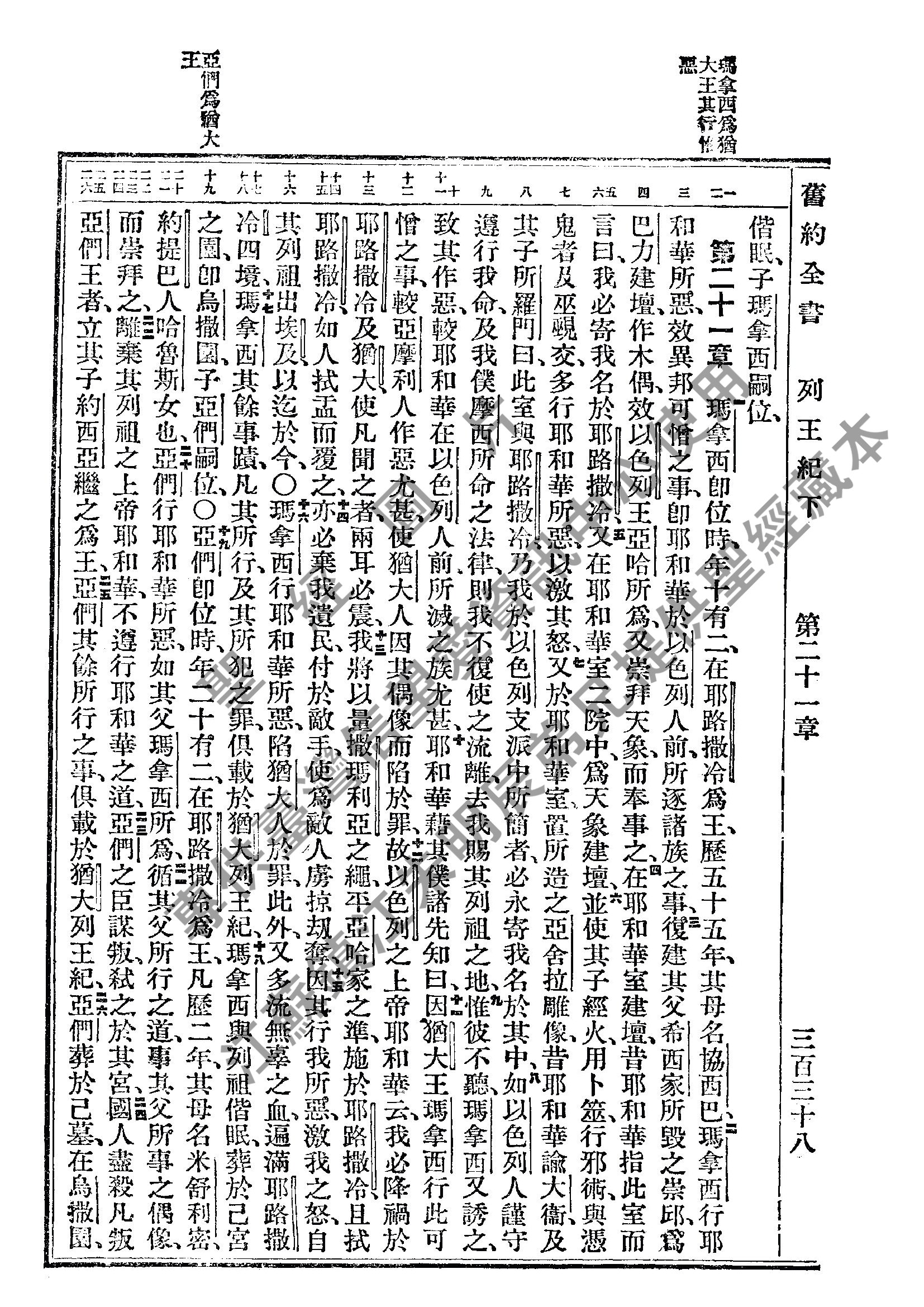1934年新舊約全書(文理和合本) 列王紀下 20 章 到 21 章