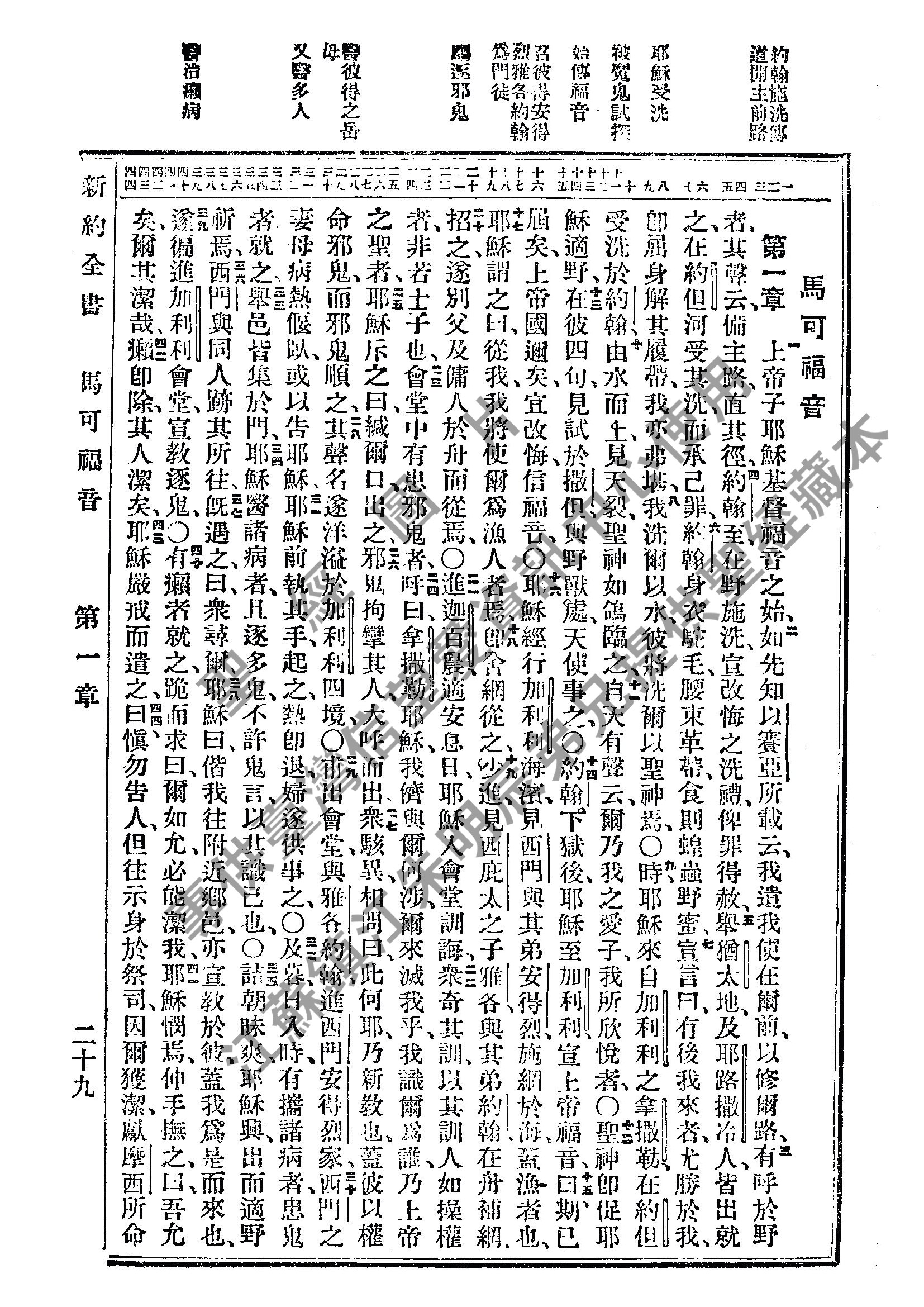1934年新舊約全書(文理和合本) 馬可福音 1 章 到 1 章