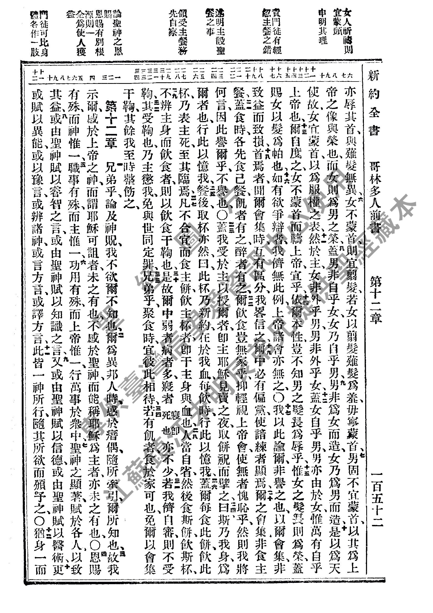 1934年新舊約全書(文理和合本) 哥林多前書 11 章 到 12 章