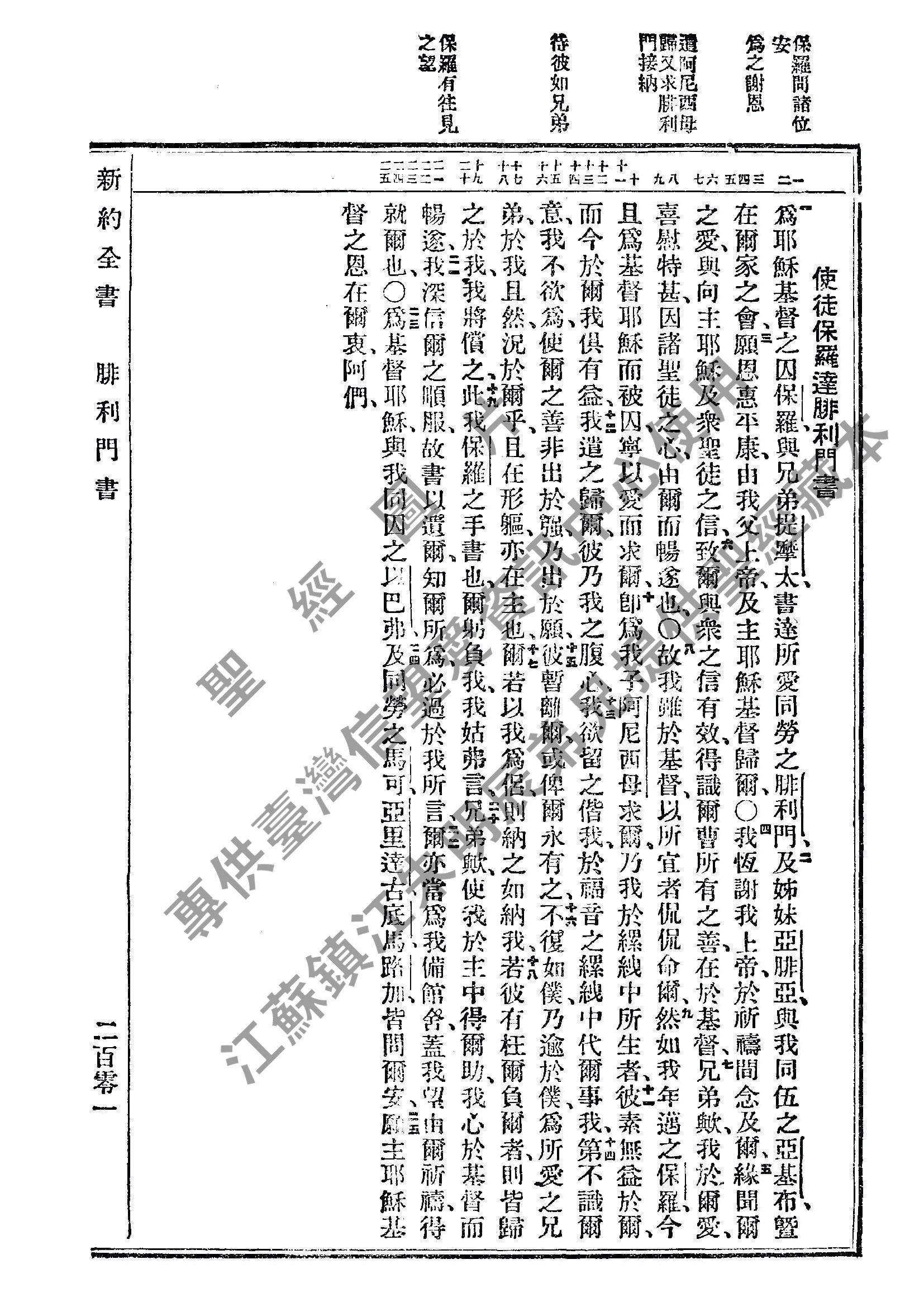 1934年新舊約全書(文理和合本) 腓利門書 1 章 到 1 章