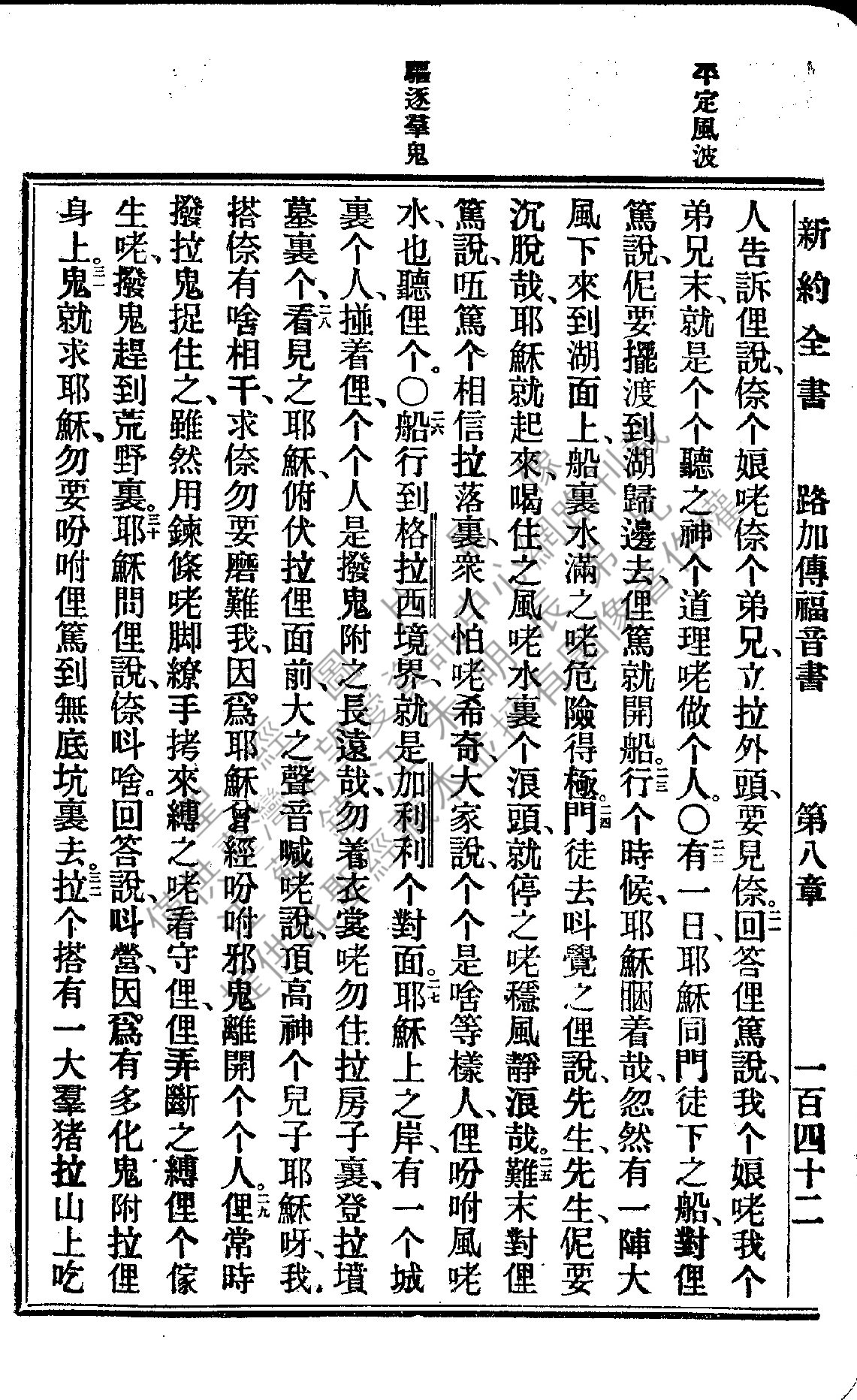 1922年新約全書 路加福音 8 章 21 節到 8 章 32 節
