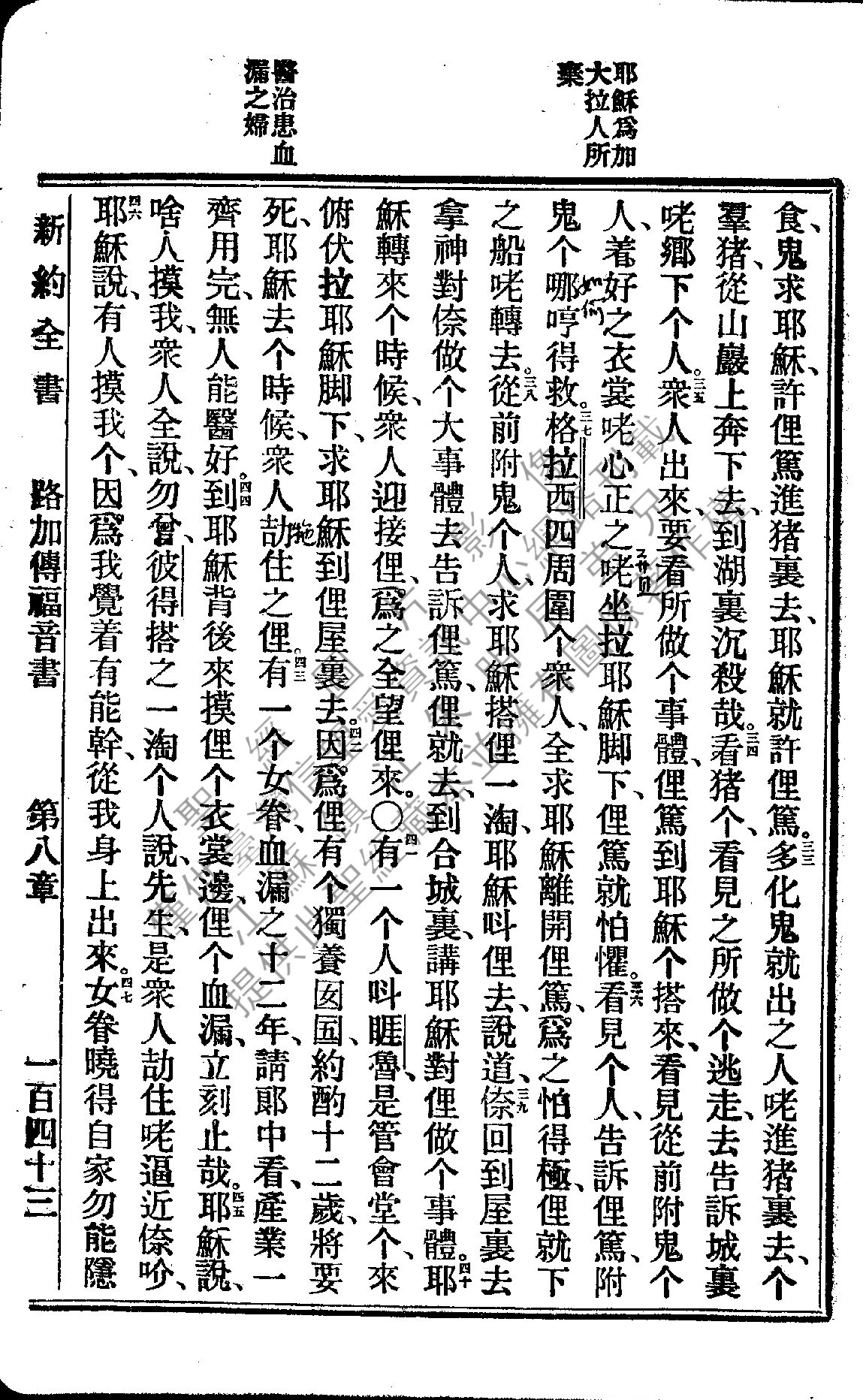 1922年新約全書 路加福音 8 章 33 節到 8 章 47 節