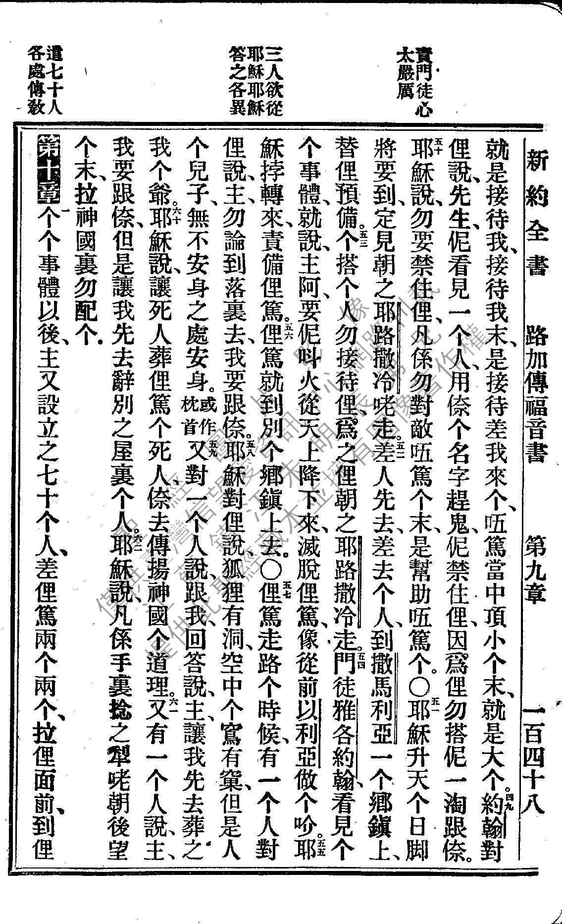 1922年新約全書 路加福音 9 章 49 節到 10 章 1 節