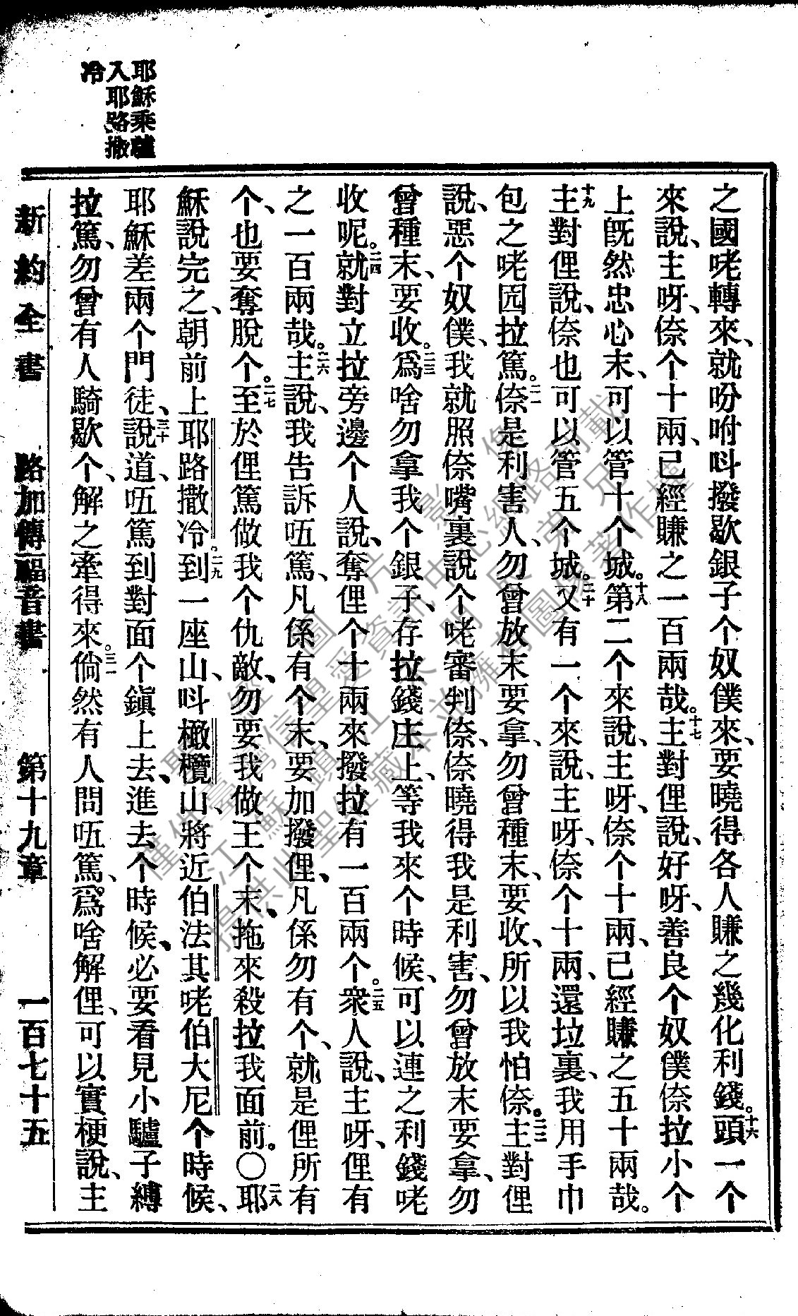 1922年新約全書 路加福音 19 章 16 節到 19 章 31 節