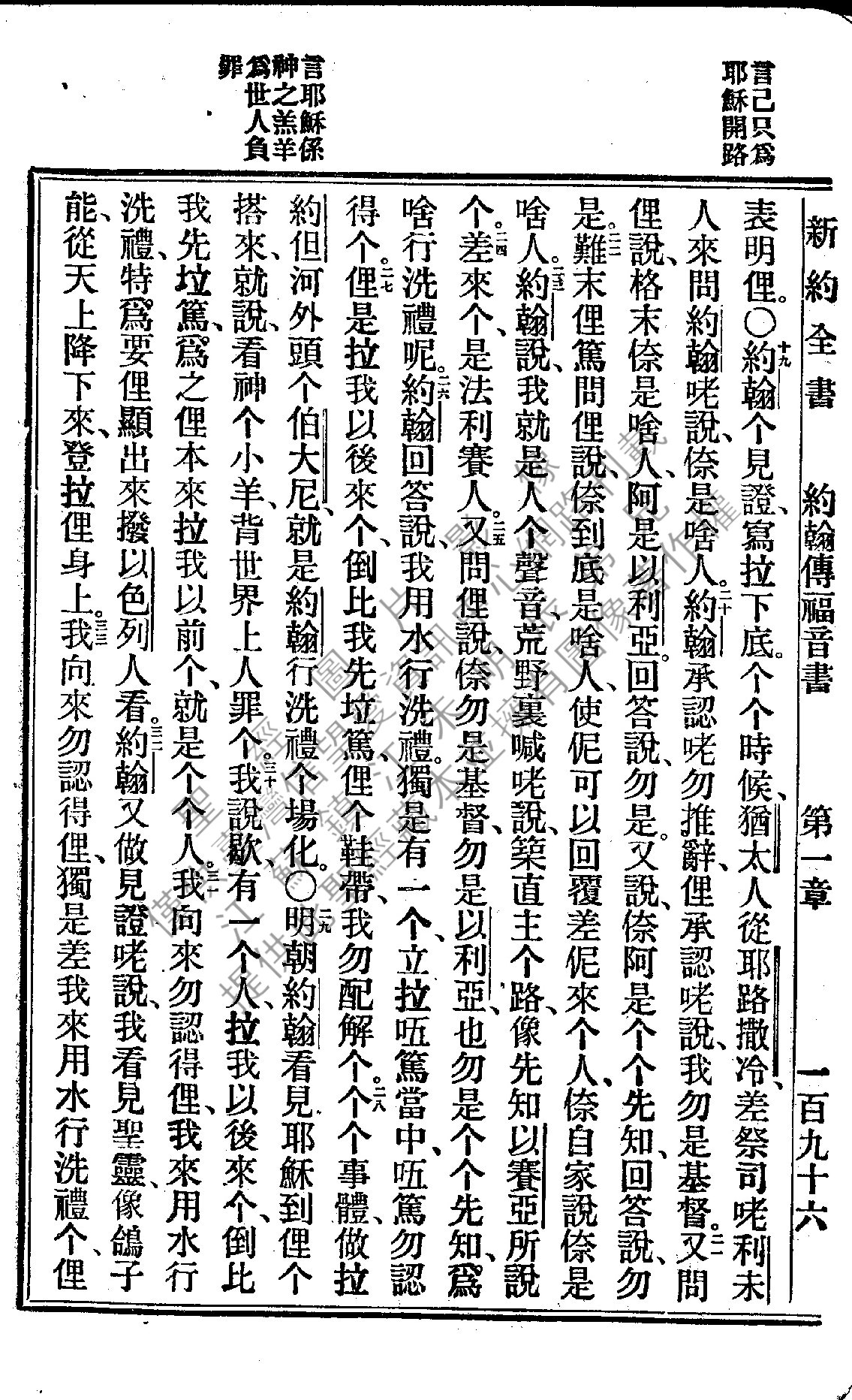 1922年新約全書 約翰福音 1 章 19 節到 1 章 33 節