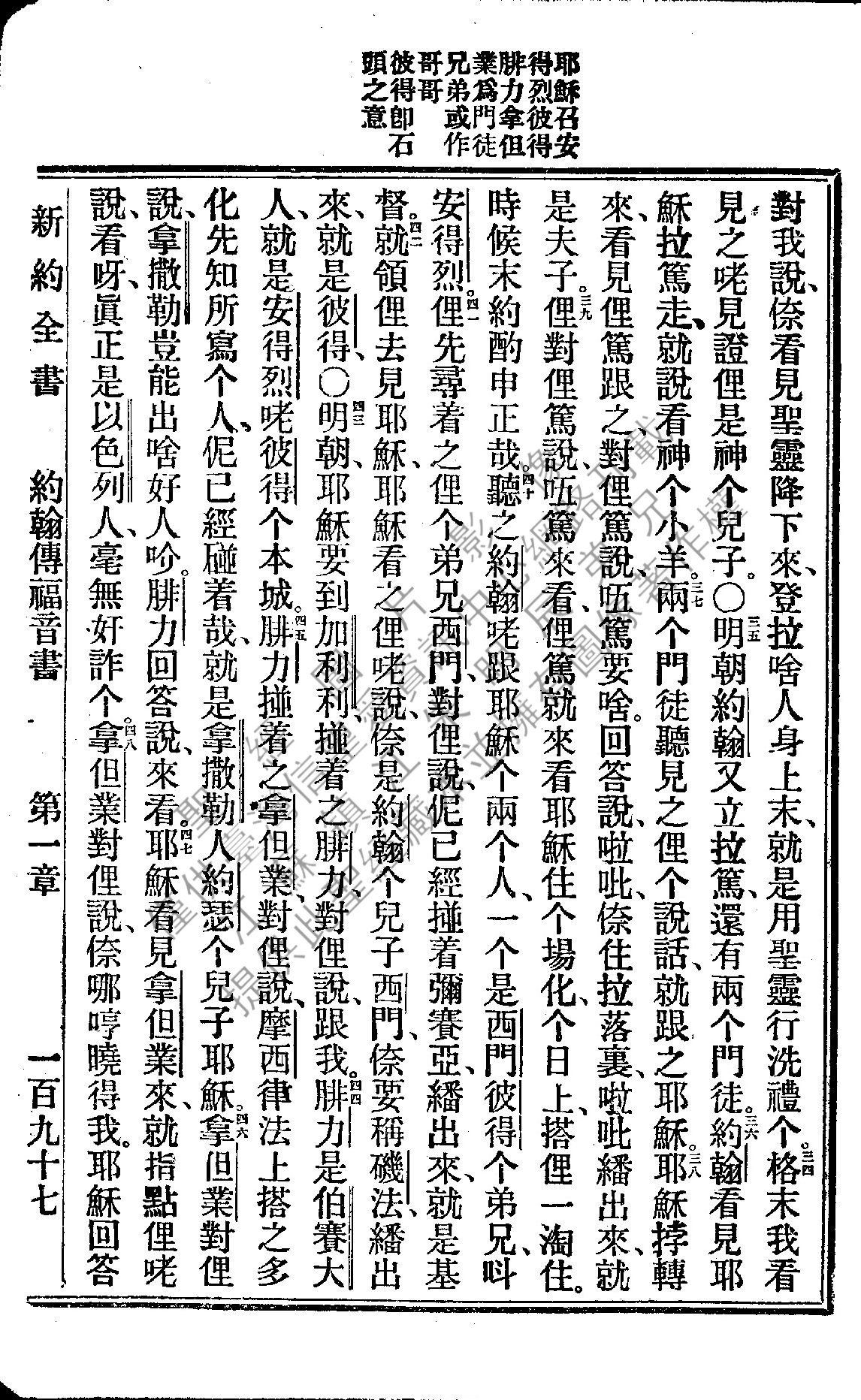1922年新約全書 約翰福音 1 章 34 節到 1 章 48 節