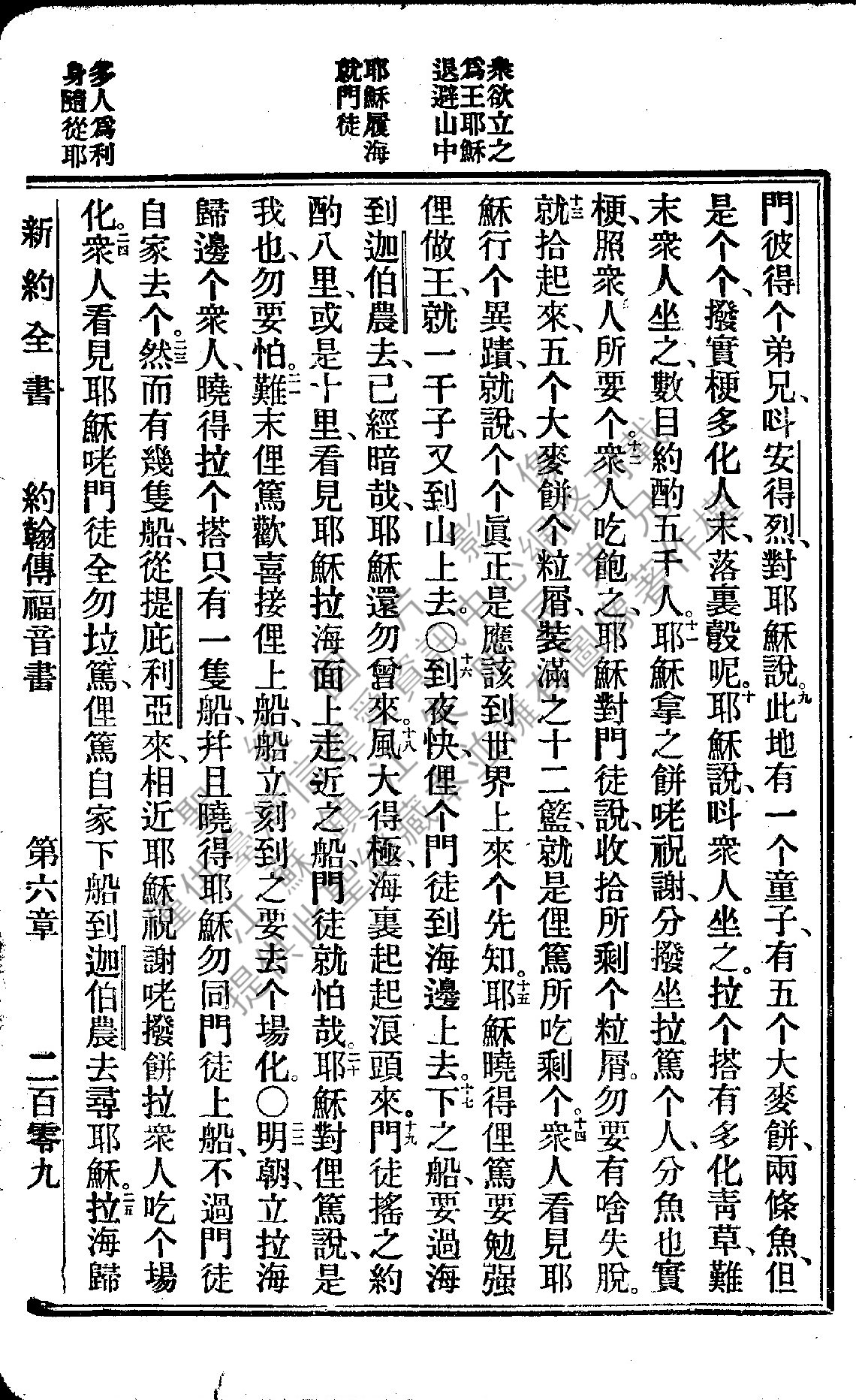 1922年新約全書 約翰福音 6 章 9 節到 6 章 25 節