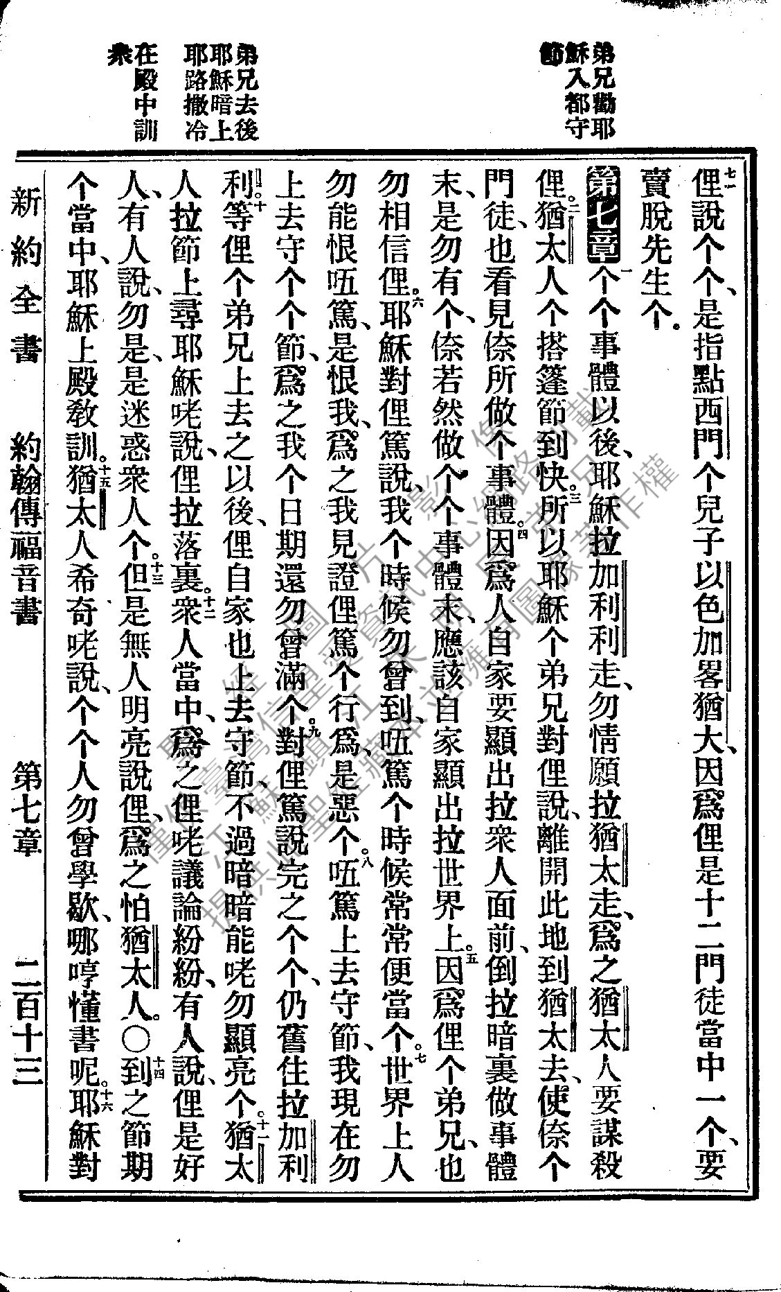 1922年新約全書 約翰福音 6 章 71 節到 7 章 16 節