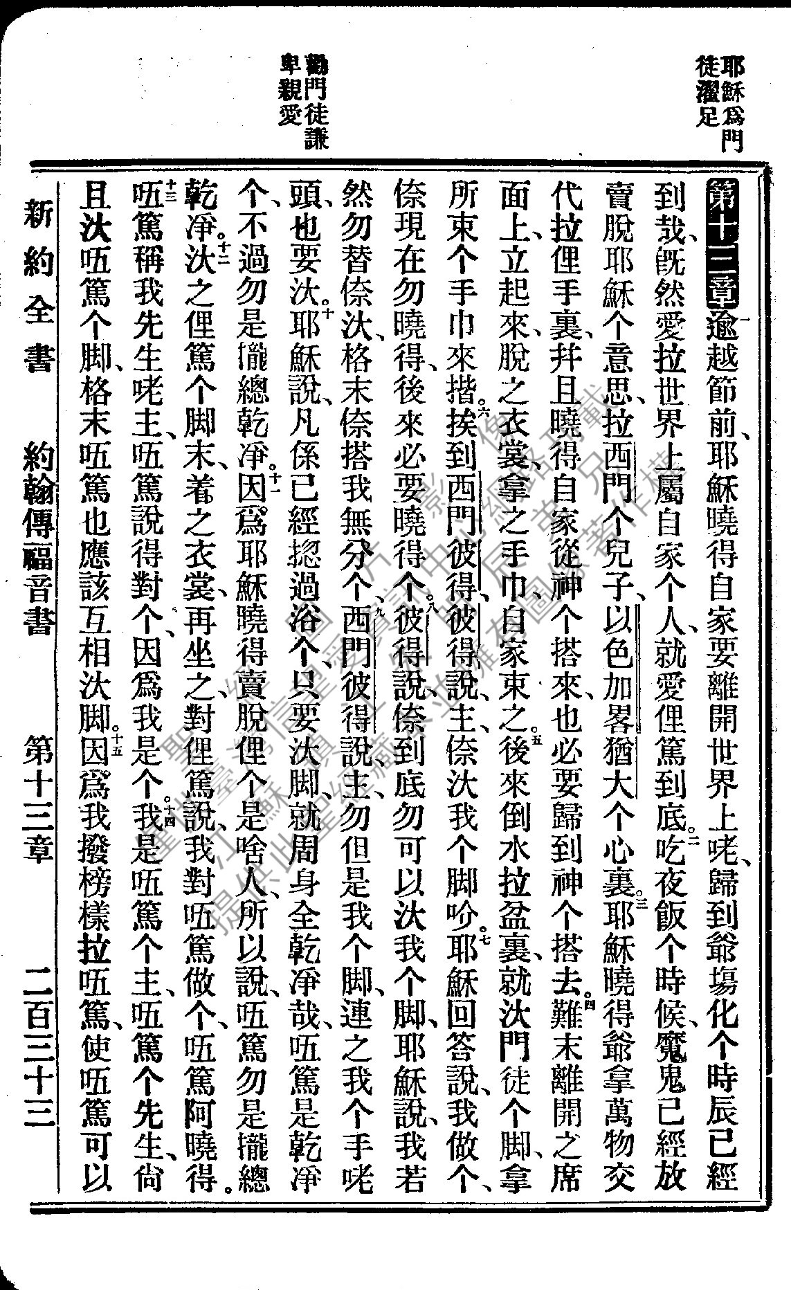 1922年新約全書 約翰福音 13 章 1 節到 13 章 15 節