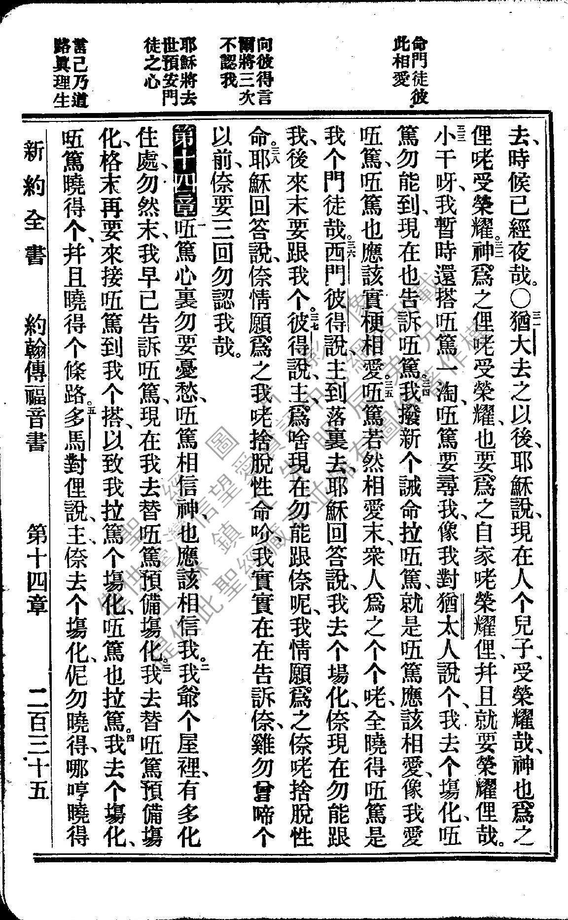 1922年新約全書 約翰福音 13 章 31 節到 14 章 5 節