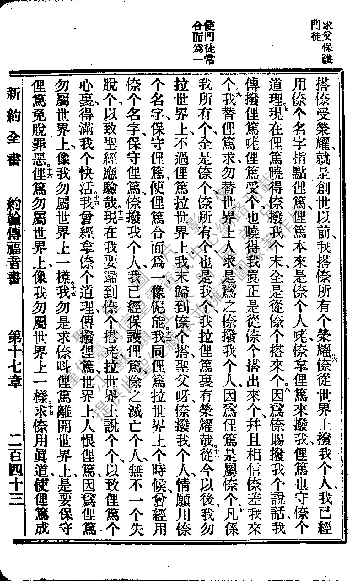 1922年新約全書 約翰福音 17 章 6 節到 17 章 17 節