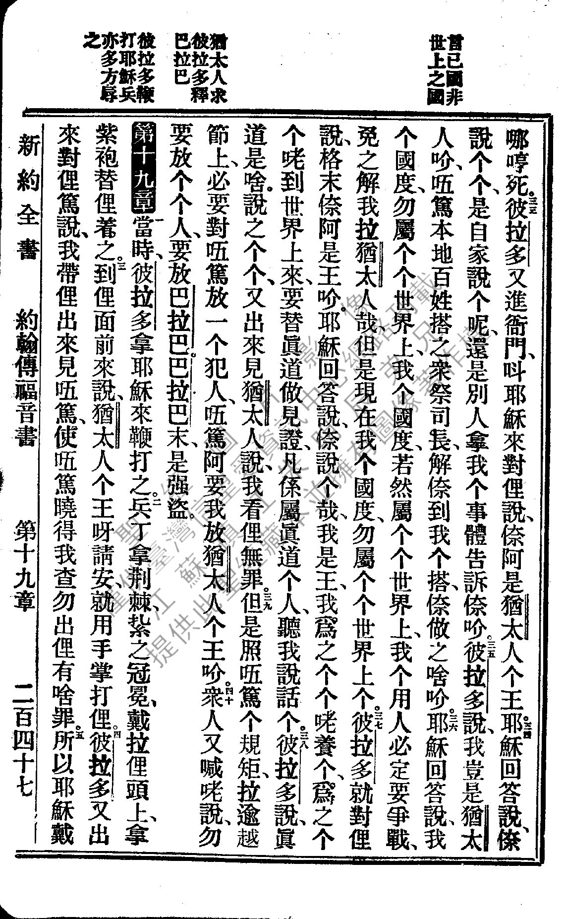 1922年新約全書 約翰福音 18 章 33 節到 19 章 5 節