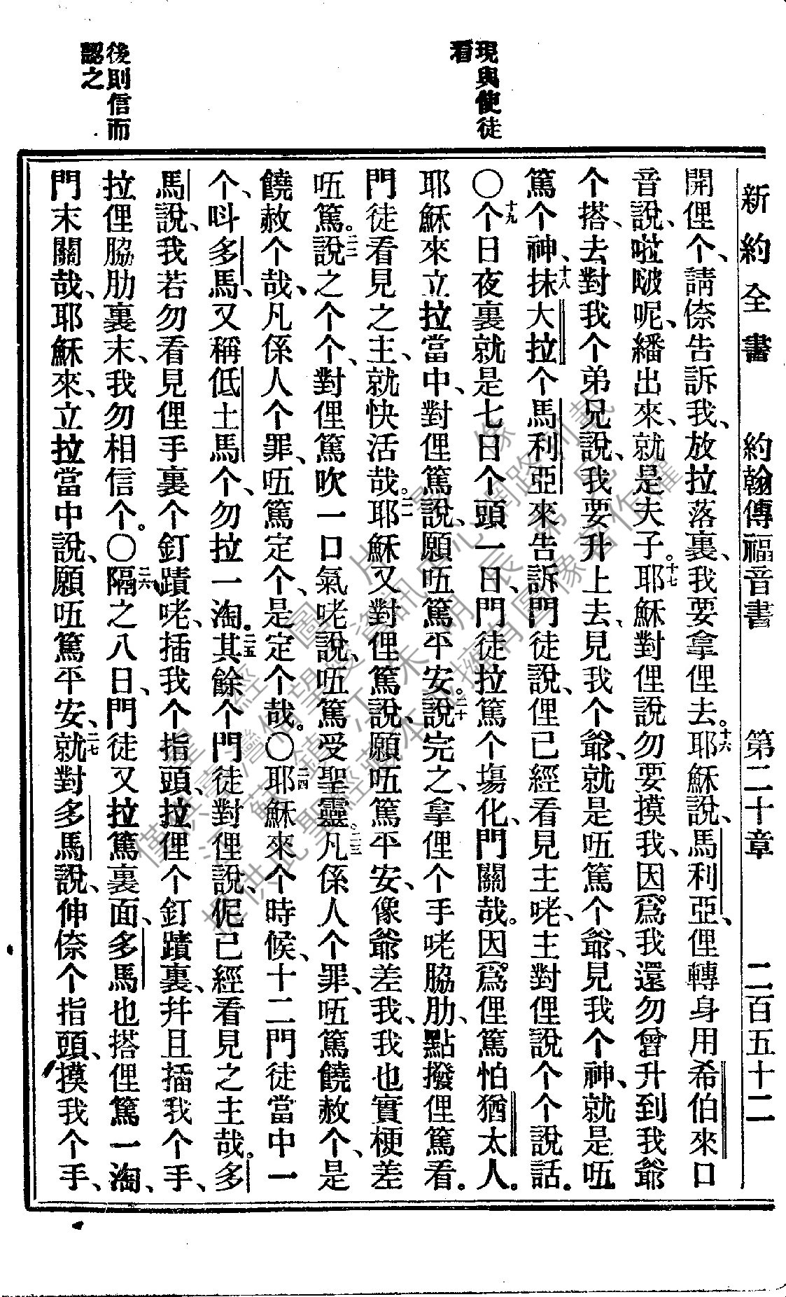 1922年新約全書 約翰福音 20 章 16 節到 20 章 27 節