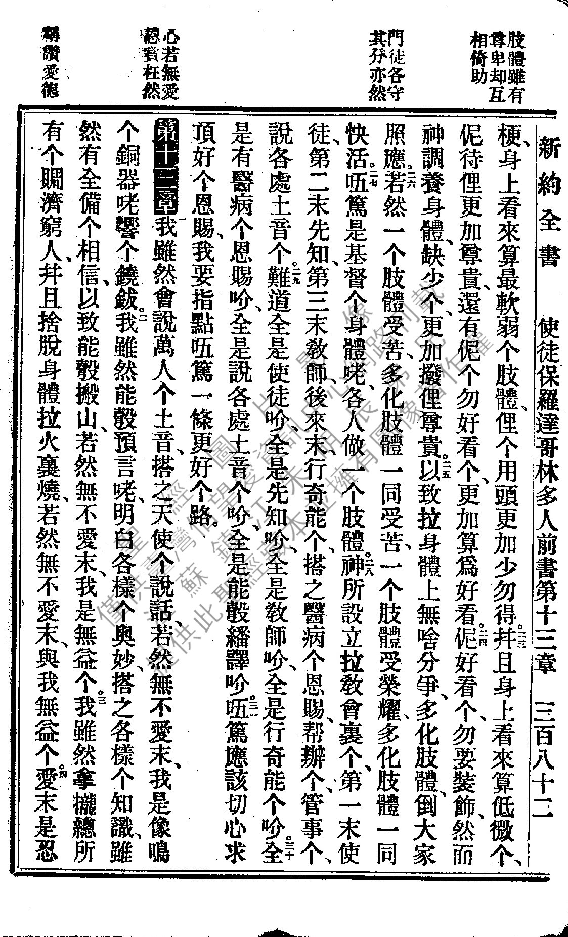 1922年新約全書 哥林多前書 12 章 23 節到 13 章 4 節