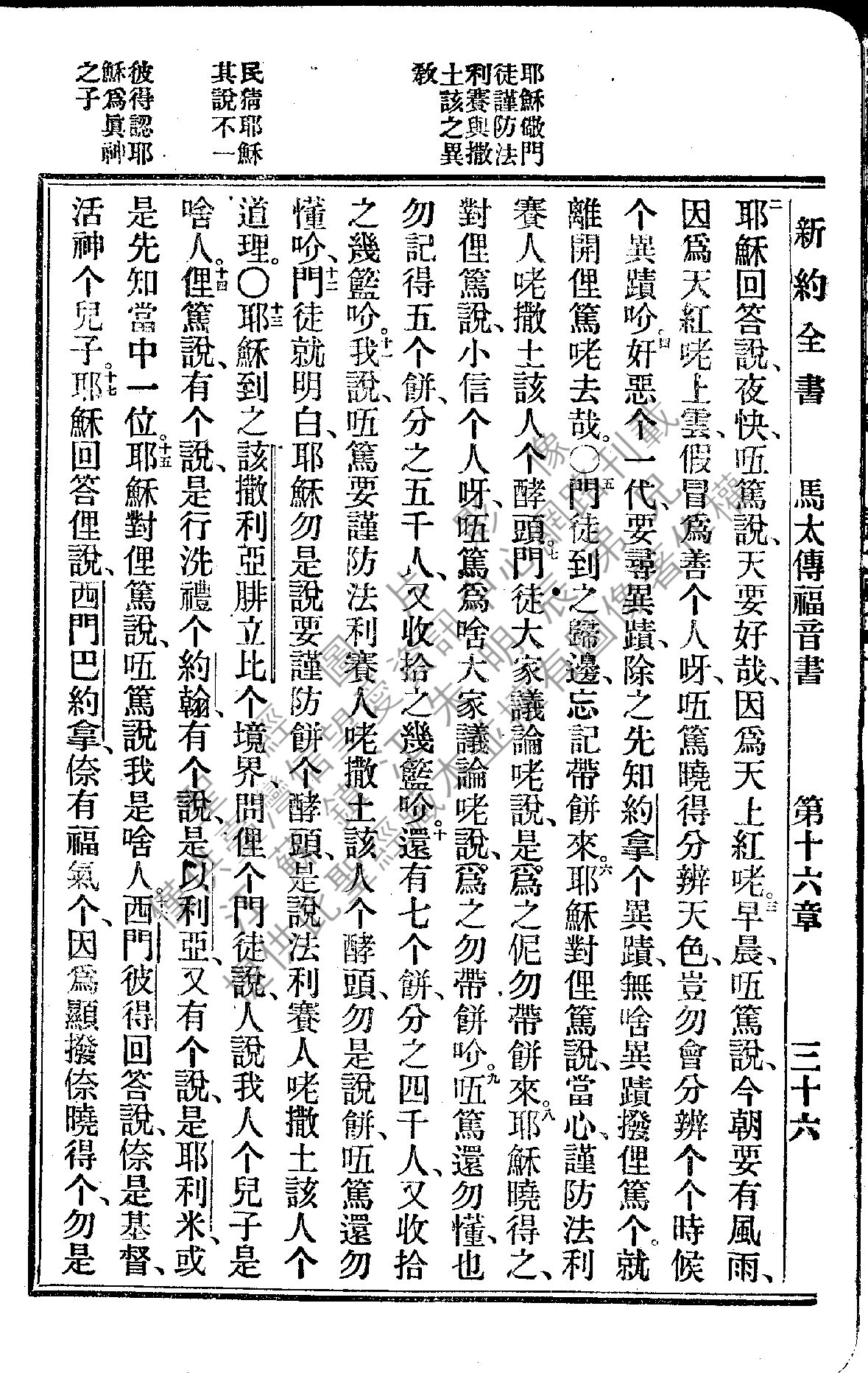 1922年新約全書 馬太福音 16 章 2 節到 16 章 17 節