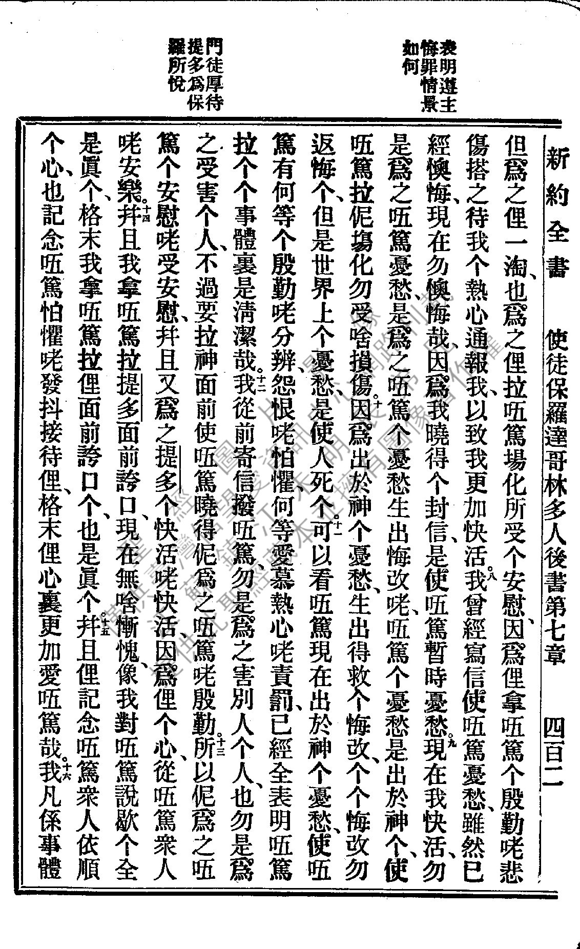 1922年新約全書 哥林多後書 7 章 8 節到 7 章 16 節