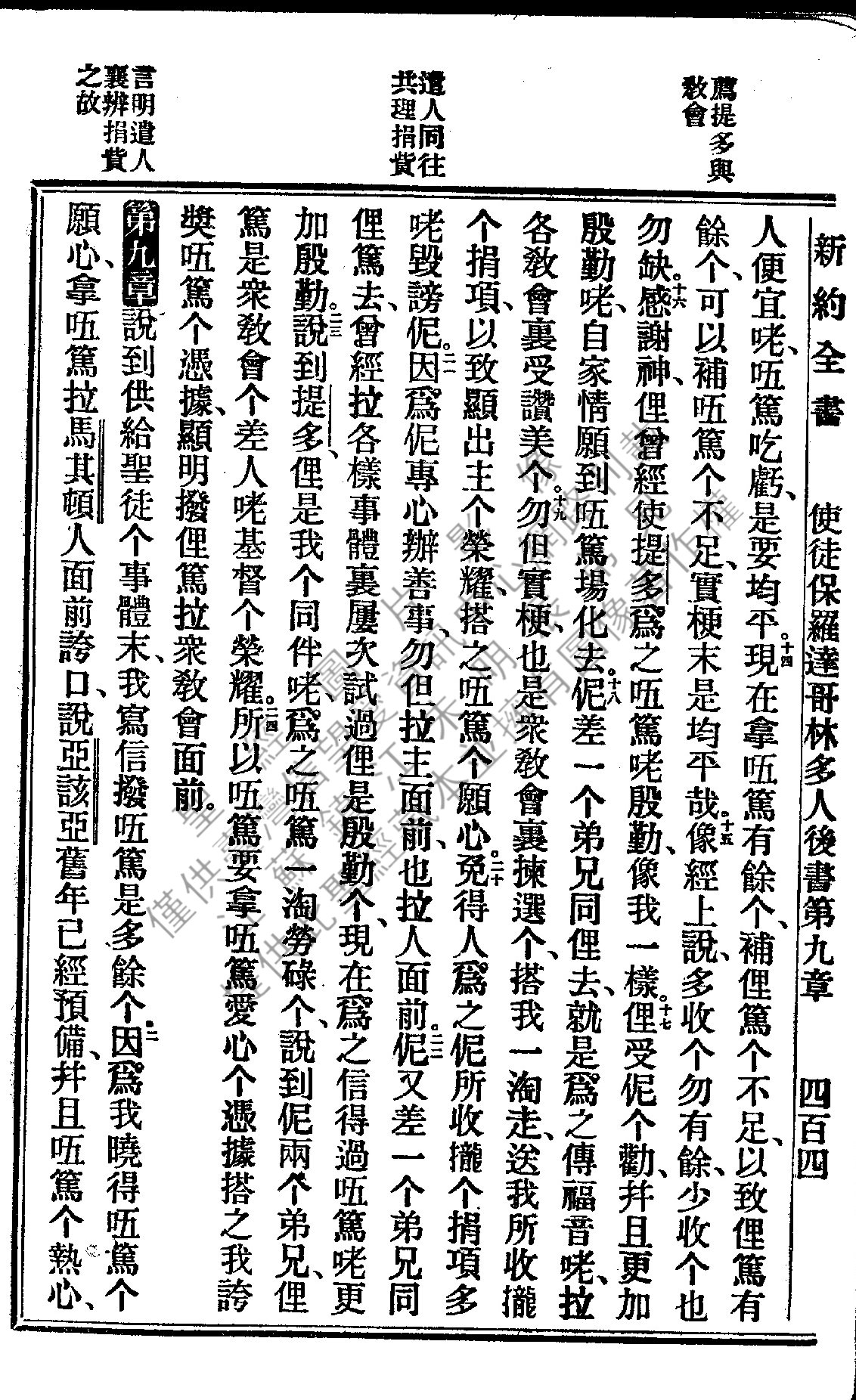1922年新約全書 哥林多後書 8 章 14 節到 9 章 2 節
