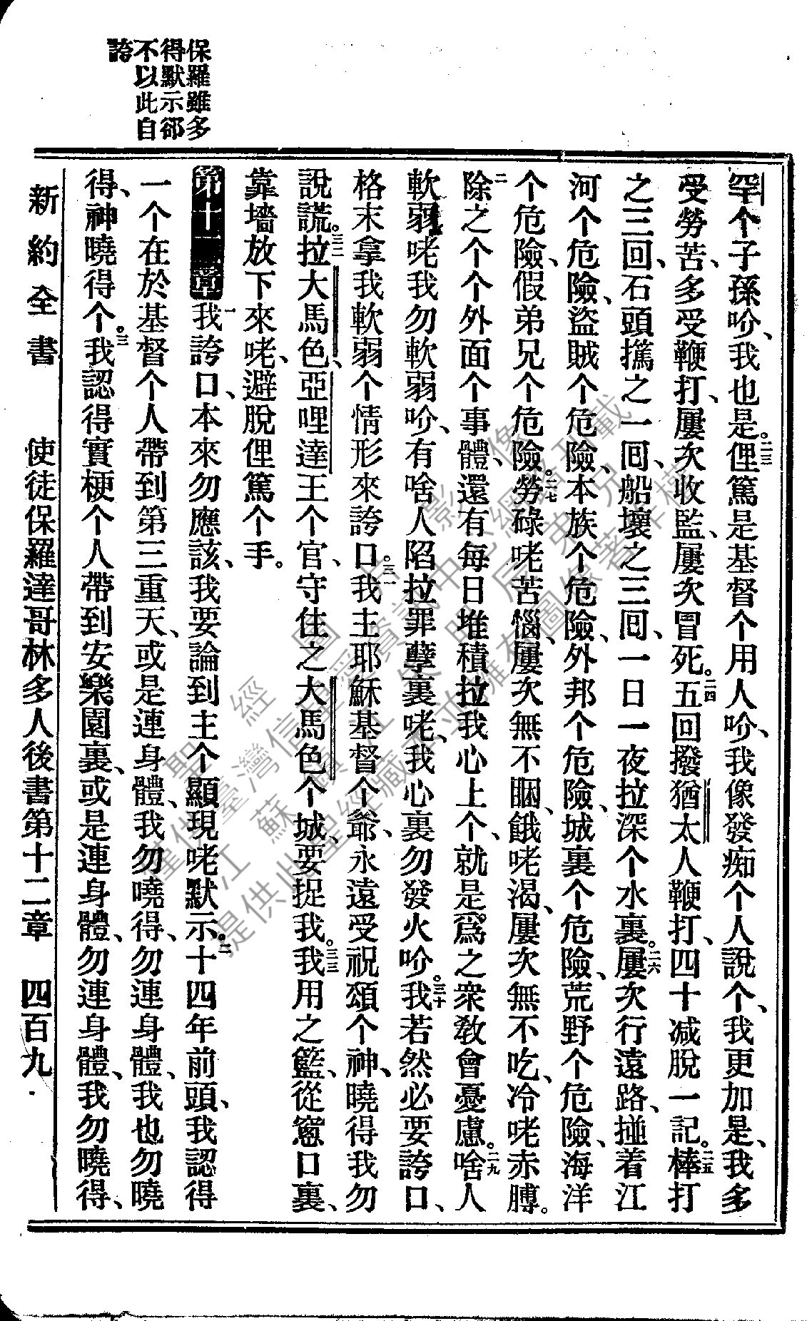 1922年新約全書 哥林多後書 11 章 23 節到 12 章 3 節