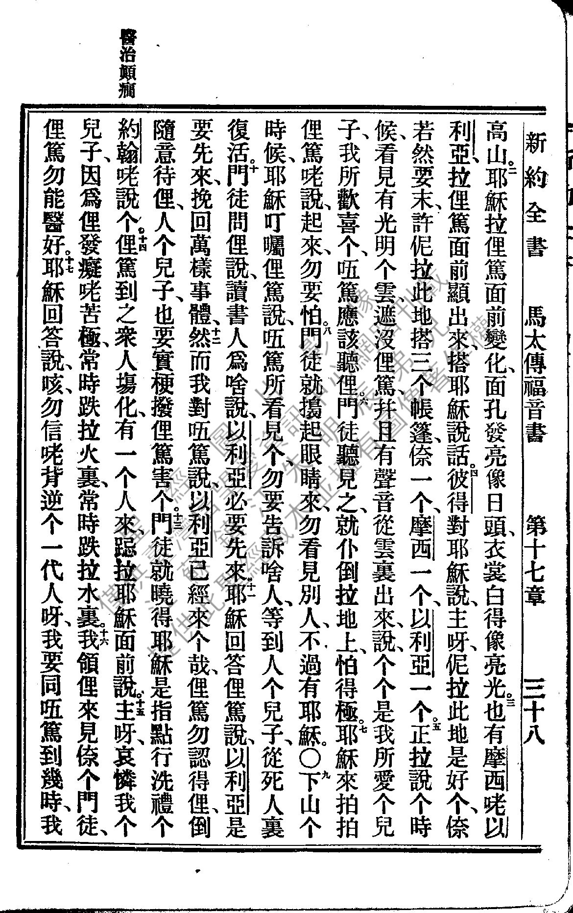 1922年新約全書 馬太福音 17 章 2 節到 17 章 17 節