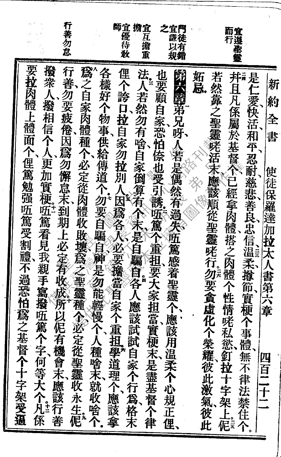 1922年新約全書 加拉太書 5 章 23 節到 6 章 12 節