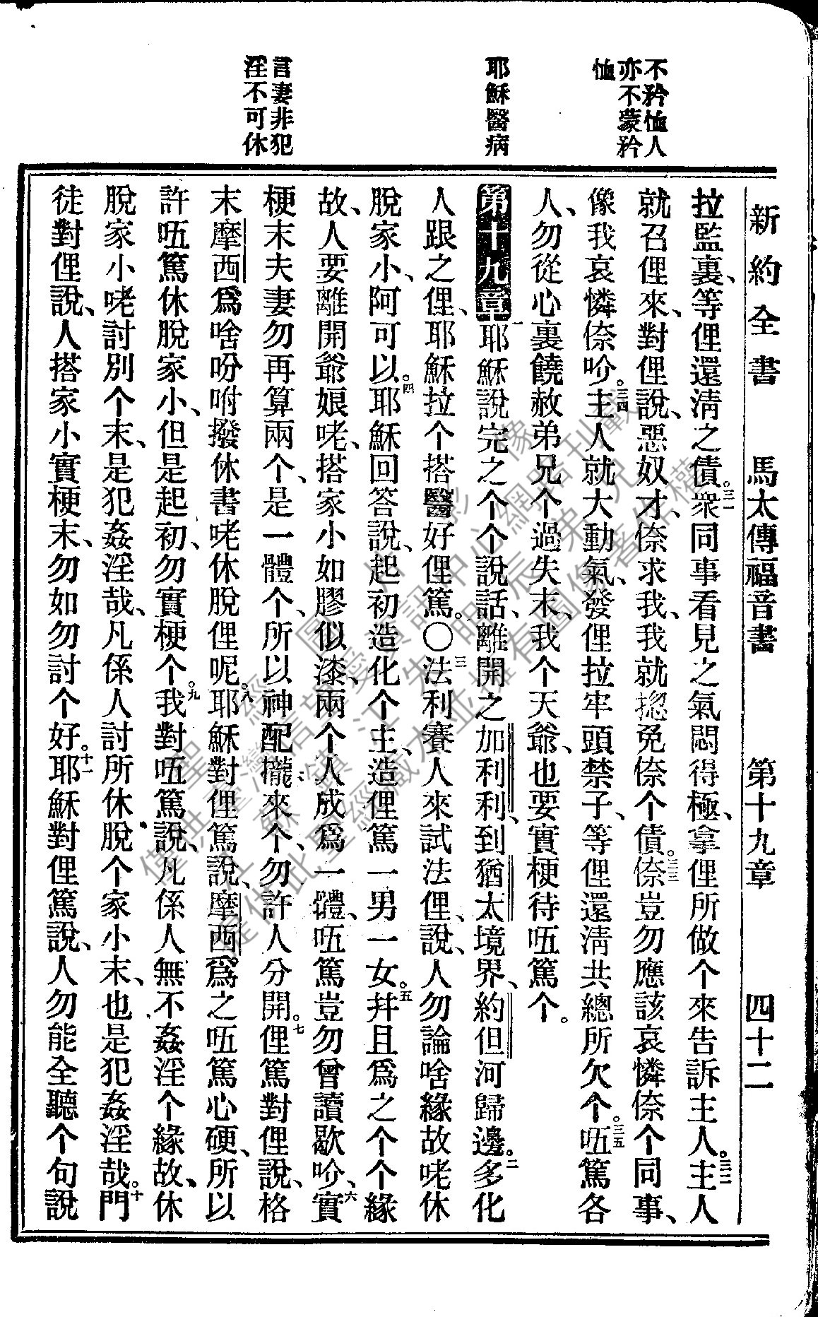 1922年新約全書 馬太福音 18 章 31 節到 19 章 11 節