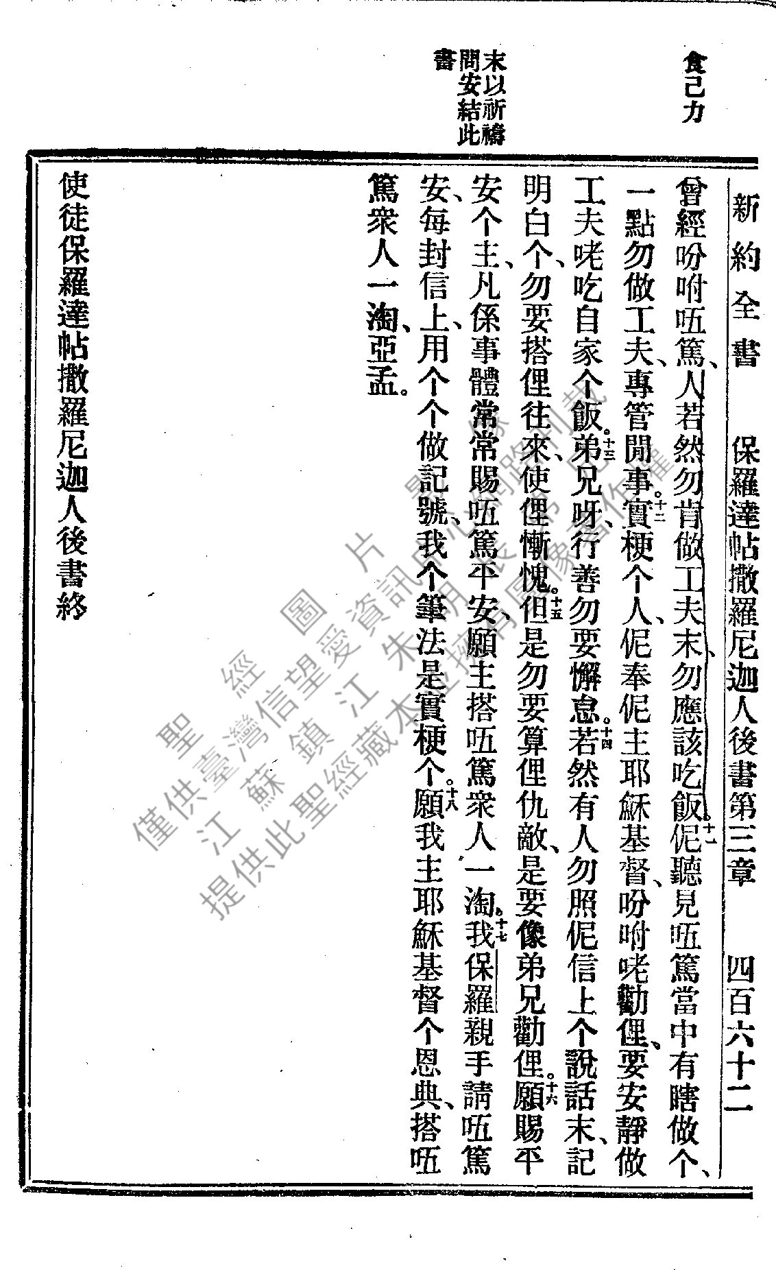 1922年新約全書 帖撒羅尼迦後書 3 章 11 節到 3 章 18 節