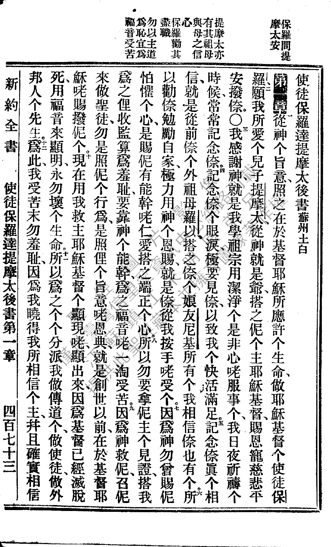 1922年新約全書 提摩太後書 1 章 1 節到 1 章 12 節