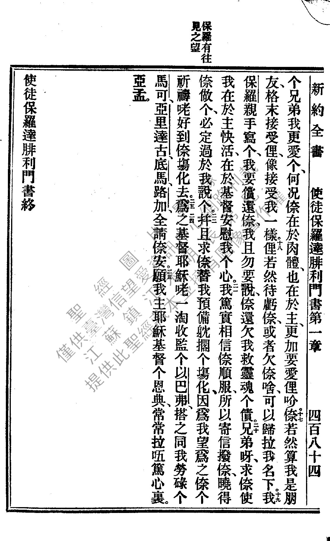 1922年新約全書 腓利門書 1 章 17 節到 1 章 25 節