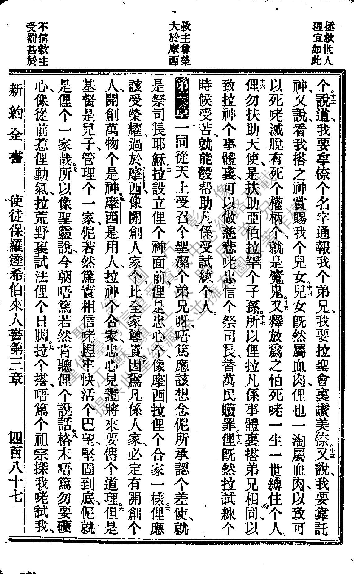 1922年新約全書 希伯來書 2 章 12 節到 3 章 9 節