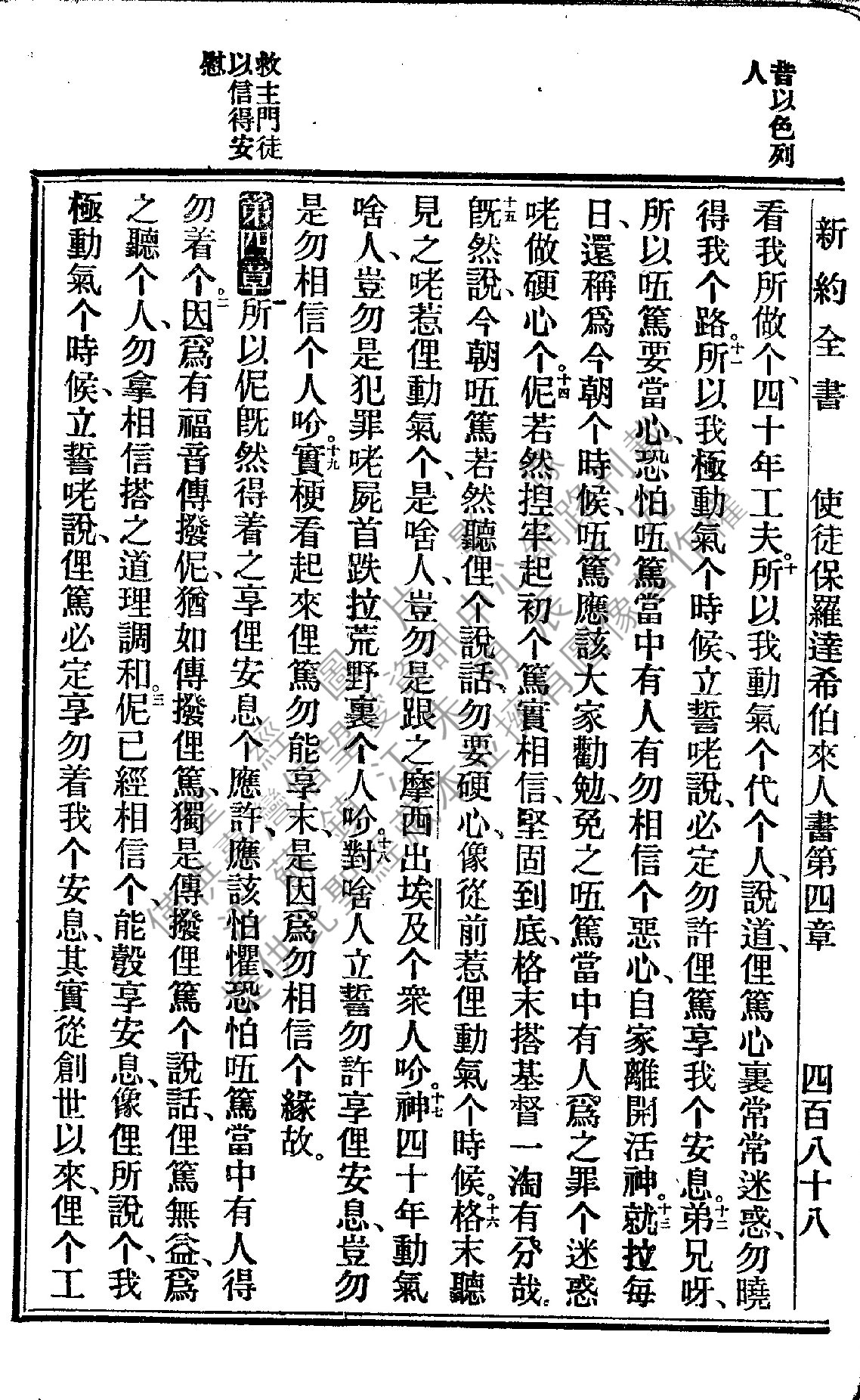 1922年新約全書 希伯來書 3 章 10 節到 4 章 3 節