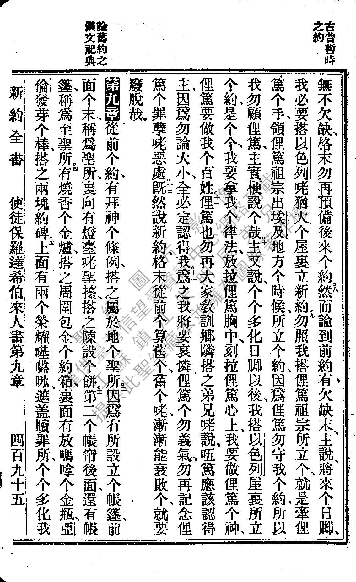 1922年新約全書 希伯來書 8 章 8 節到 9 章 5 節