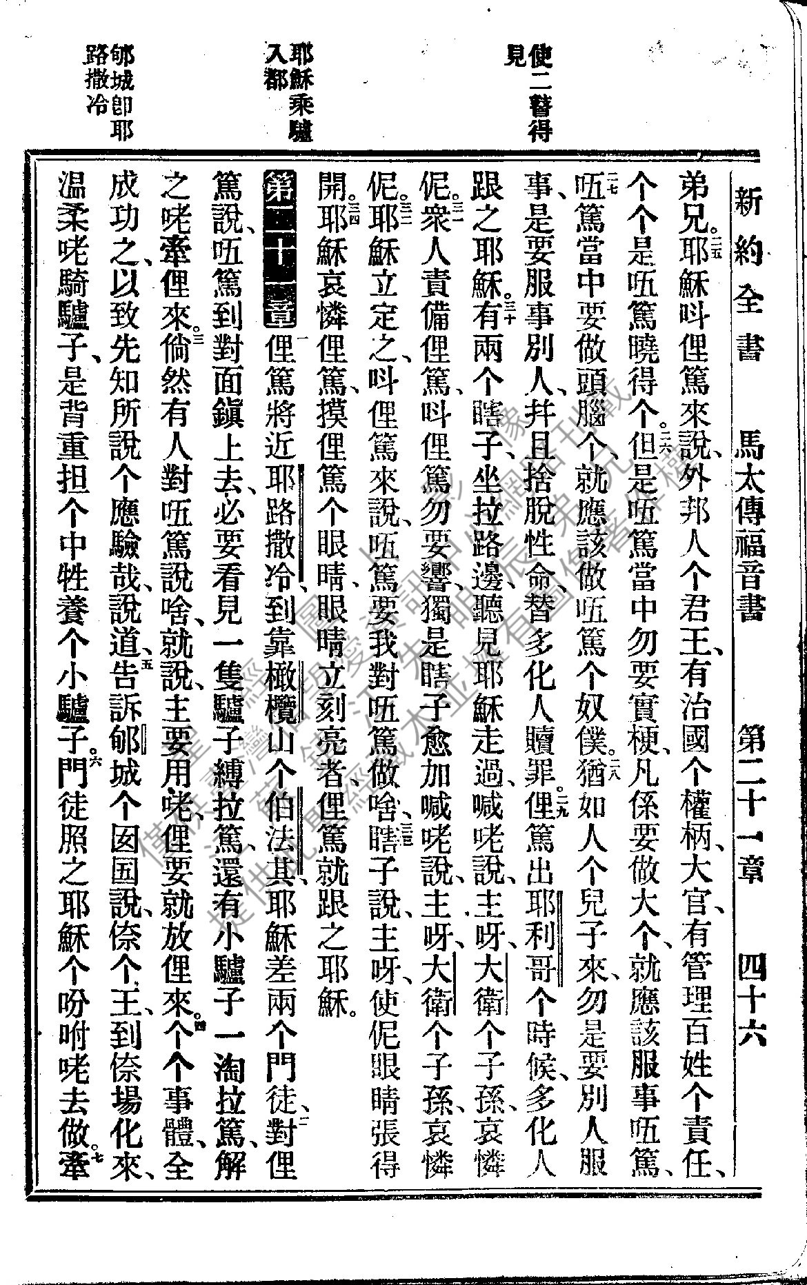 1922年新約全書 馬太福音 20 章 25 節到 21 章 7 節