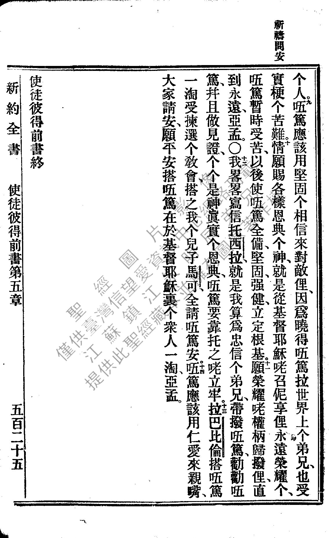 1922年新約全書 彼得前書 5 章 9 節到 5 章 14 節