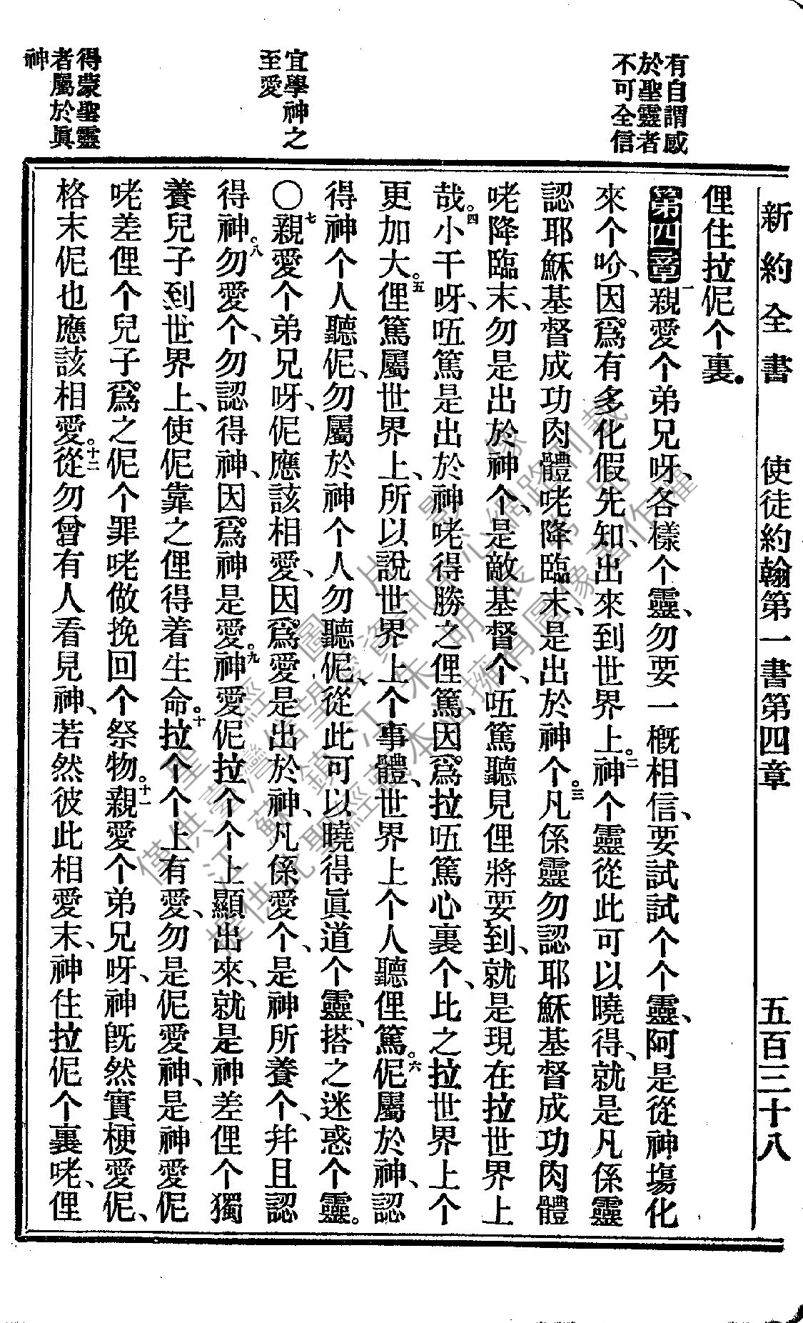 1922年新約全書 約翰一書 4 章 1 節到 4 章 12 節