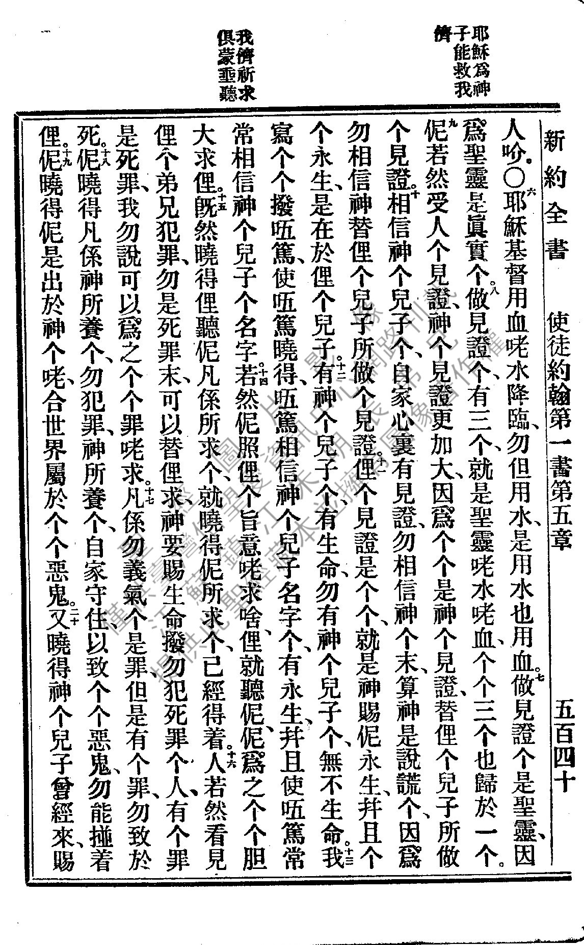 1922年新約全書 約翰一書 5 章 6 節到 5 章 20 節