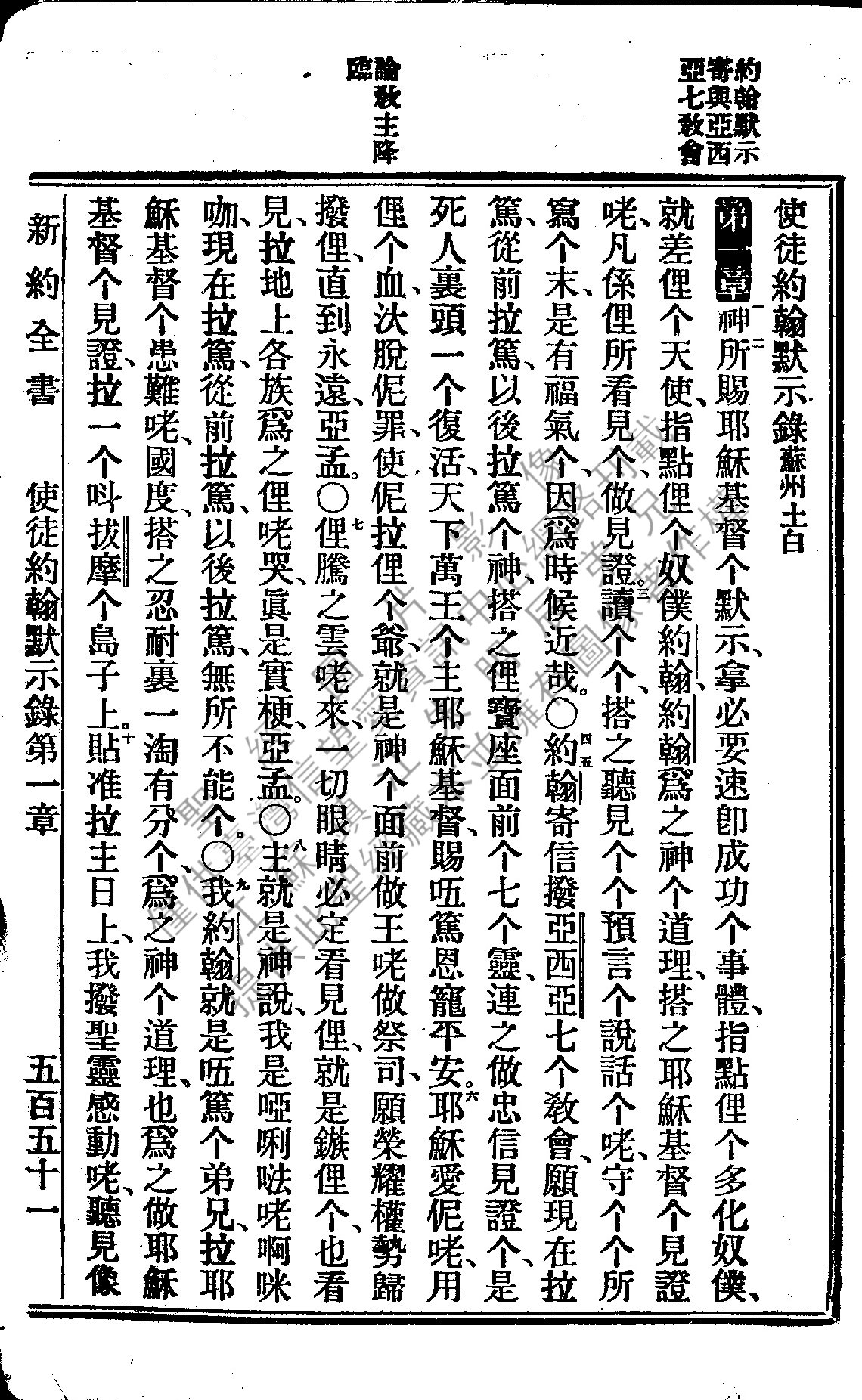 1922年新約全書 啟示錄 1 章 1 節到 1 章 10 節