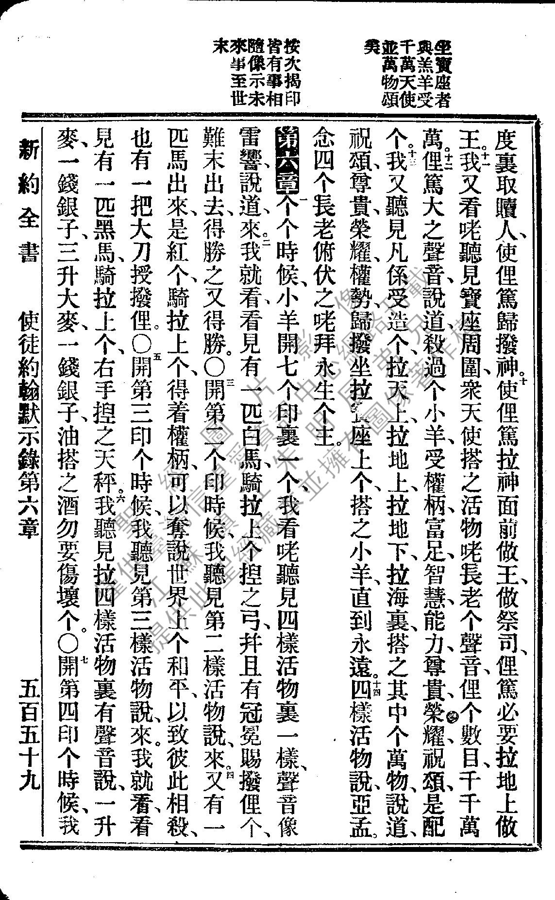 1922年新約全書 啟示錄 5 章 10 節到 6 章 7 節