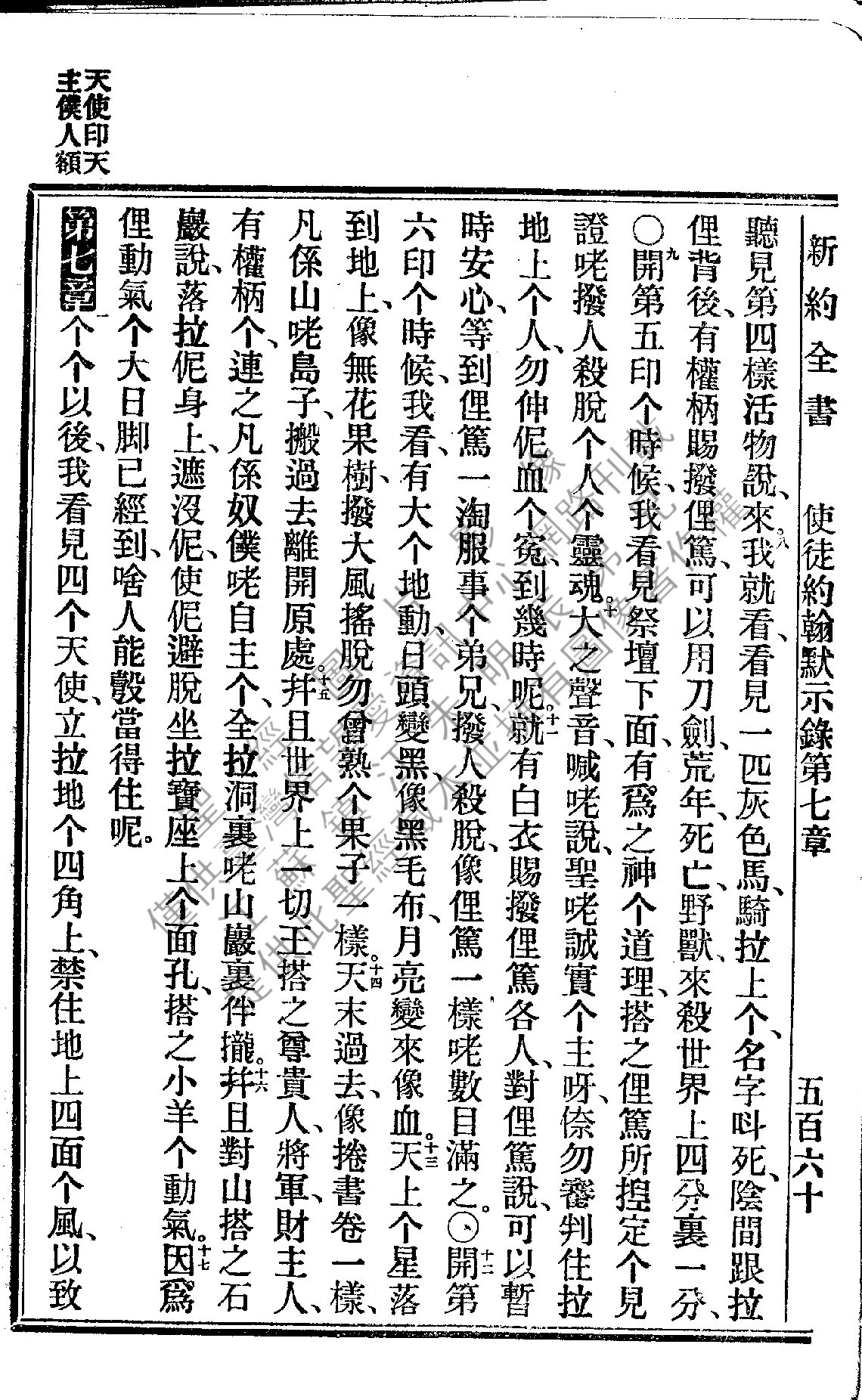 1922年新約全書 啟示錄 6 章 8 節到 7 章 1 節