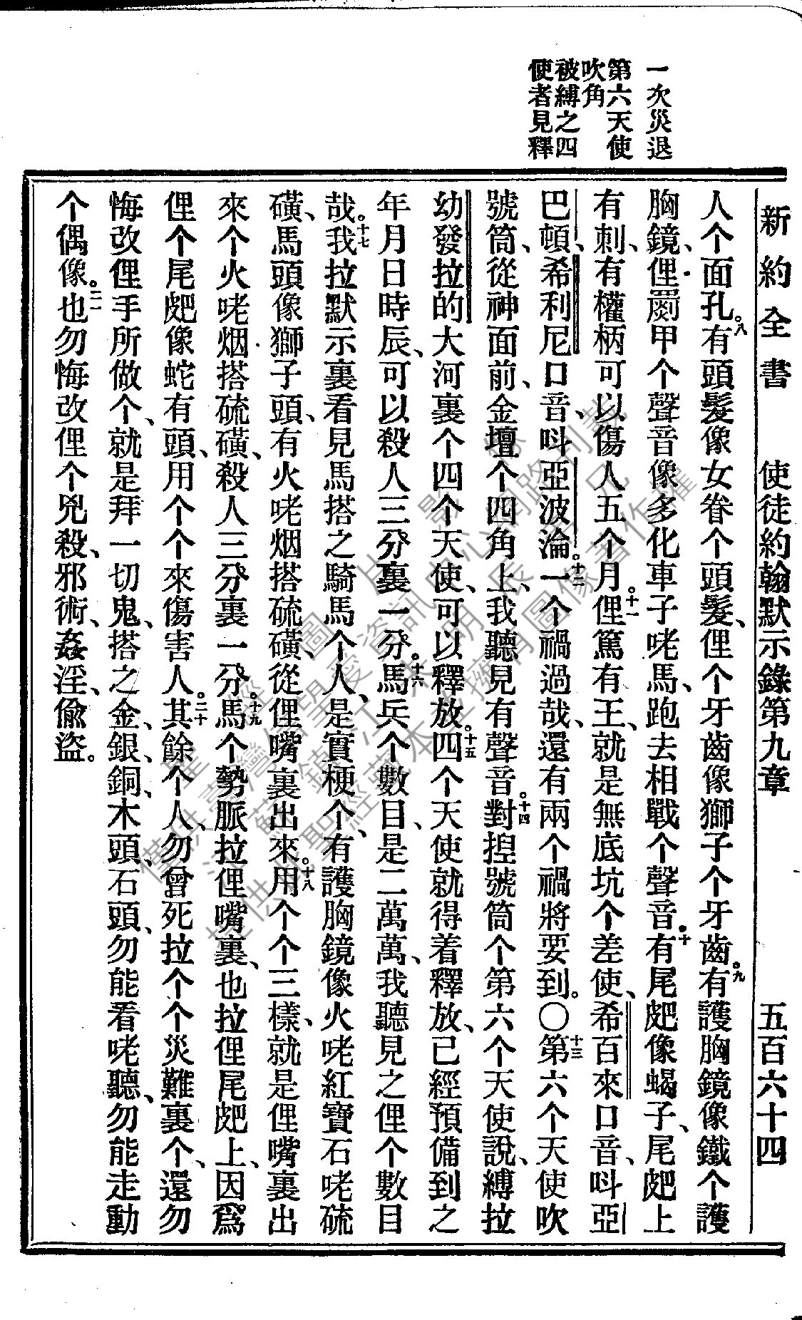 1922年新約全書 啟示錄 9 章 8 節到 9 章 21 節