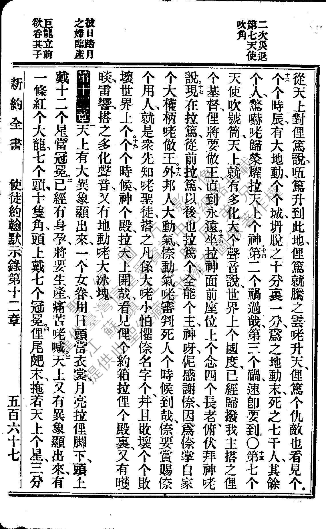 1922年新約全書 啟示錄 11 章 13 節到 12 章 4 節