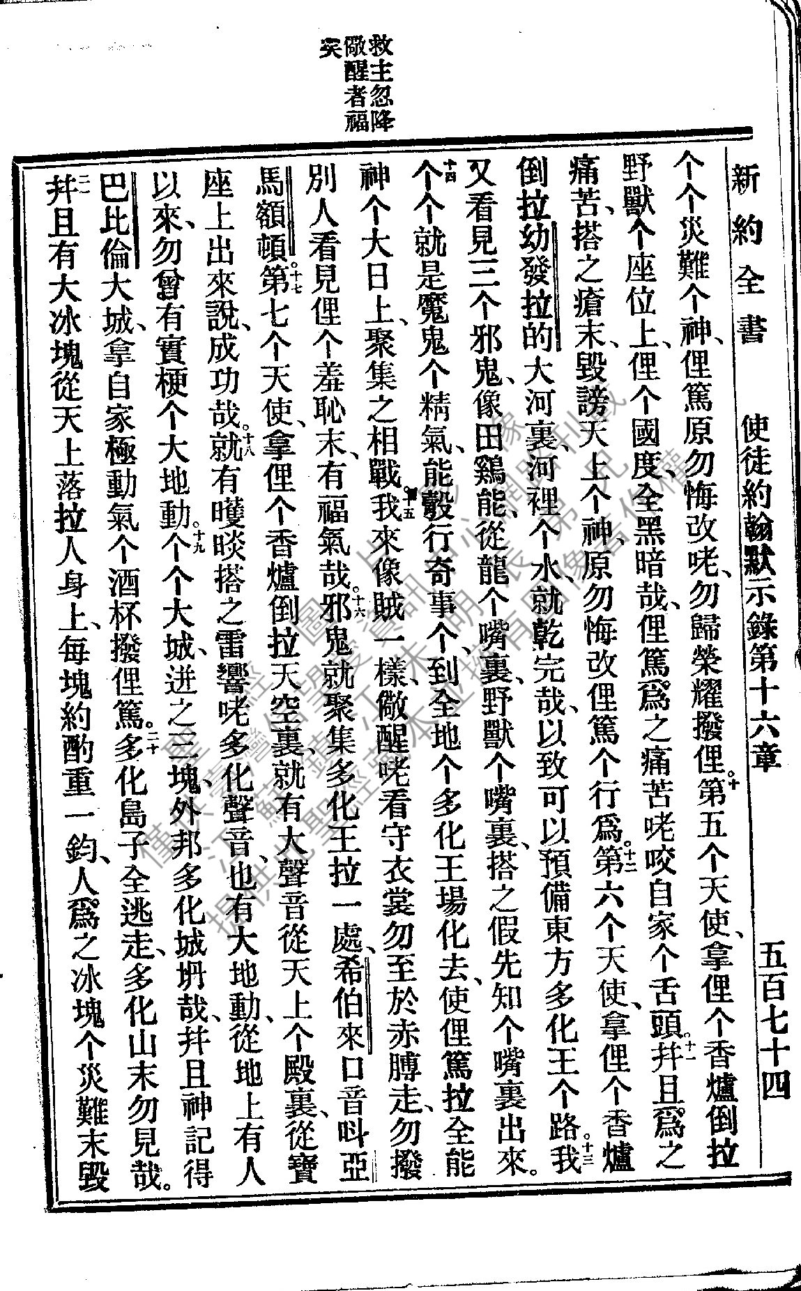1922年新約全書 啟示錄 16 章 10 節到 16 章 20 節