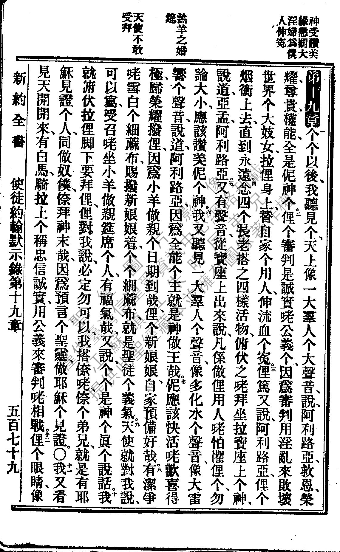 1922年新約全書 啟示錄 19 章 1 節到 19 章 12 節