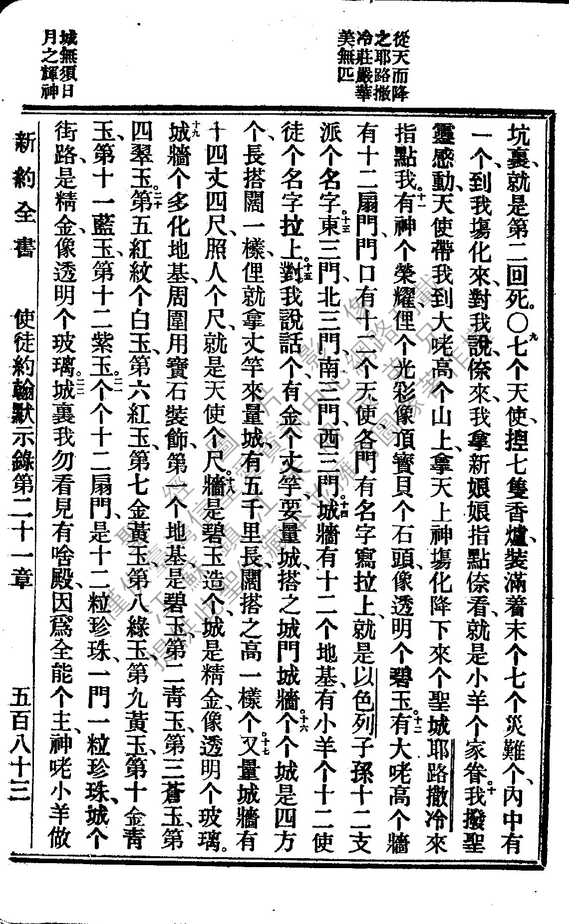 1922年新約全書 啟示錄 21 章 9 節到 21 章 22 節