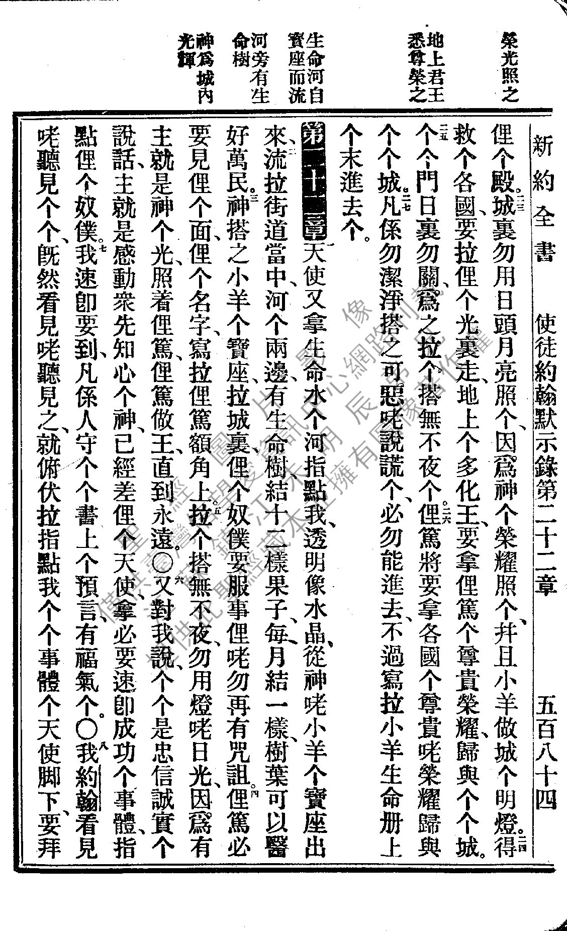 1922年新約全書 啟示錄 21 章 23 節到 22 章 8 節