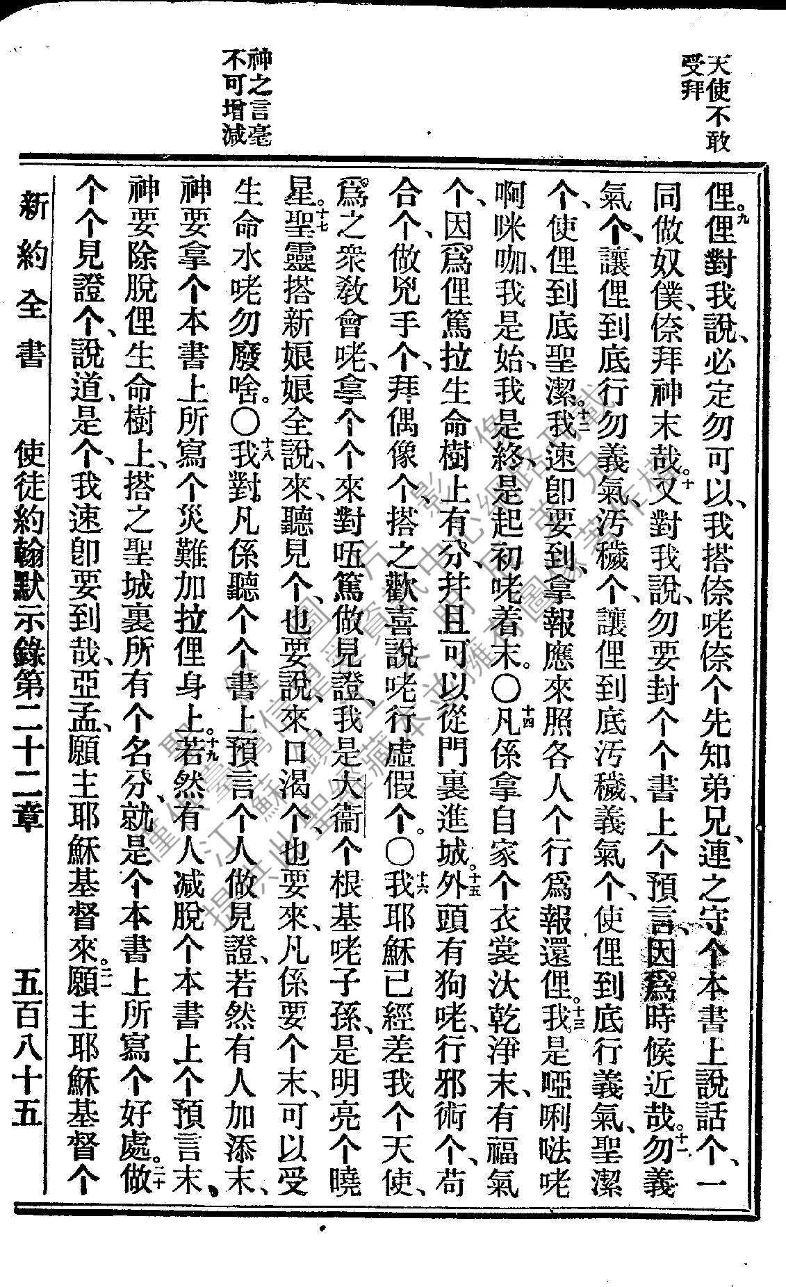 1922年新約全書 啟示錄 22 章 9 節到 22 章 21 節