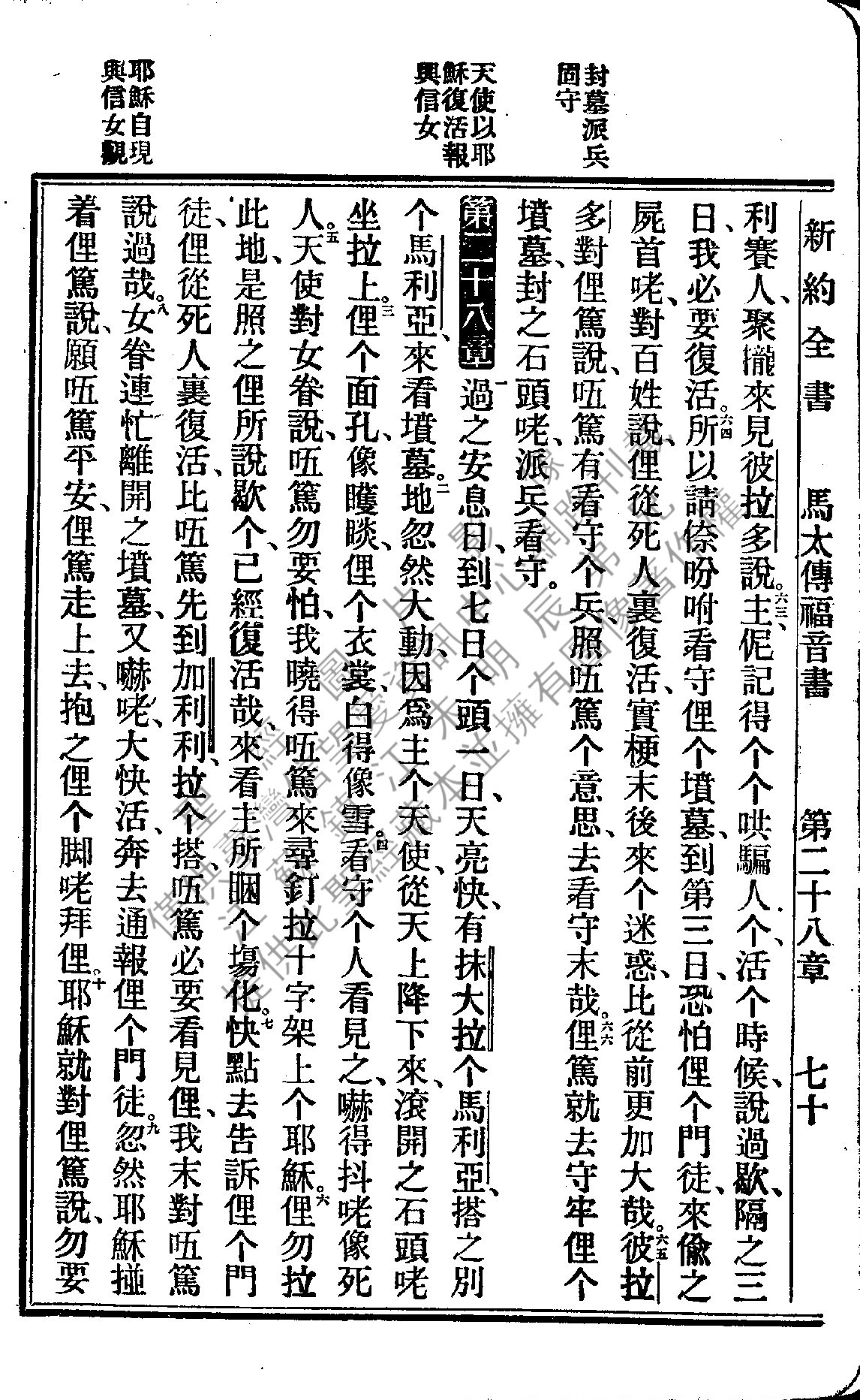 1922年新約全書 馬太福音 27 章 63 節到 28 章 10 節