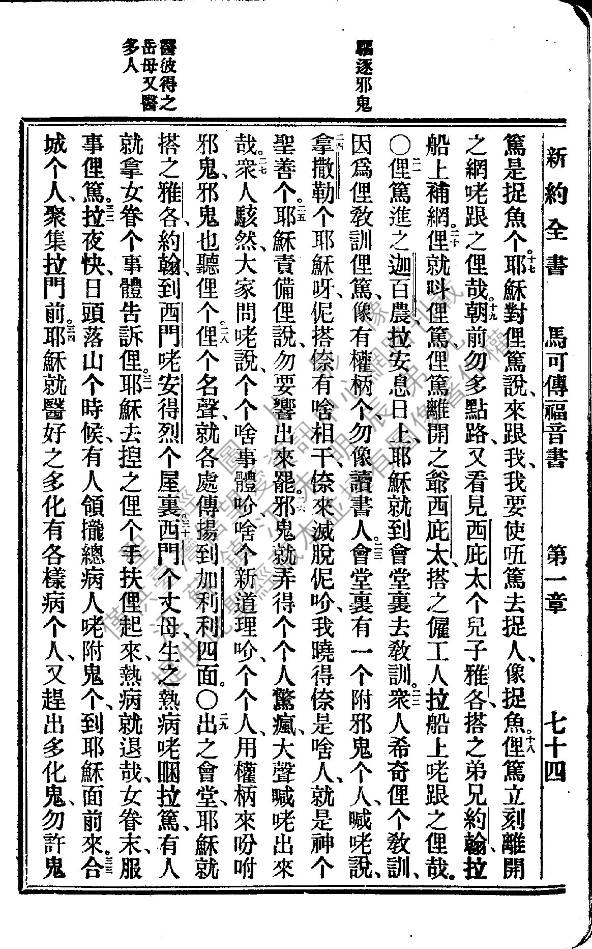 1922年新約全書 馬可福音 1 章 17 節到 1 章 34 節