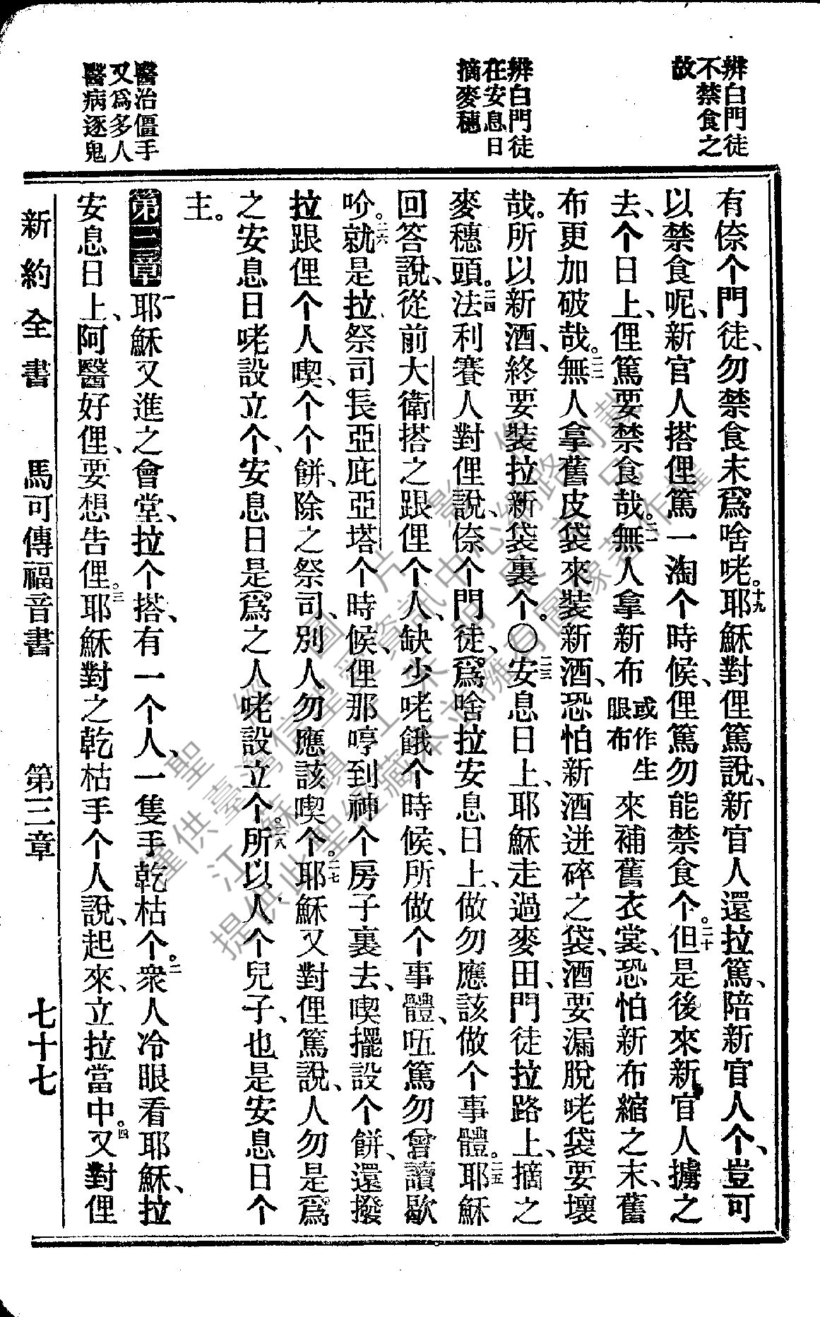 1922年新約全書 馬可福音 2 章 19 節到 3 章 4 節