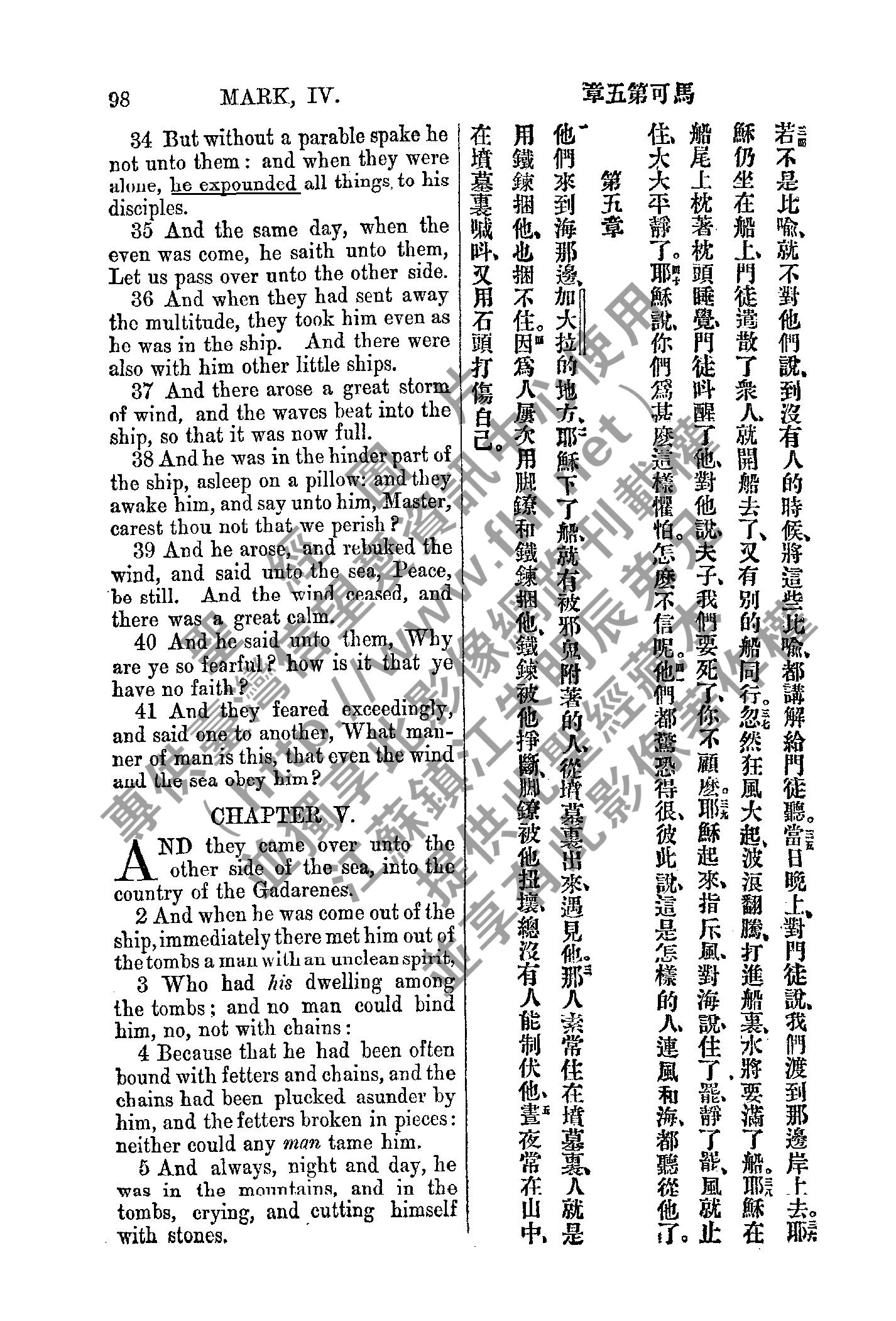 1885年新約全書 馬可福音 4 章 34 節到 5 章 5 節