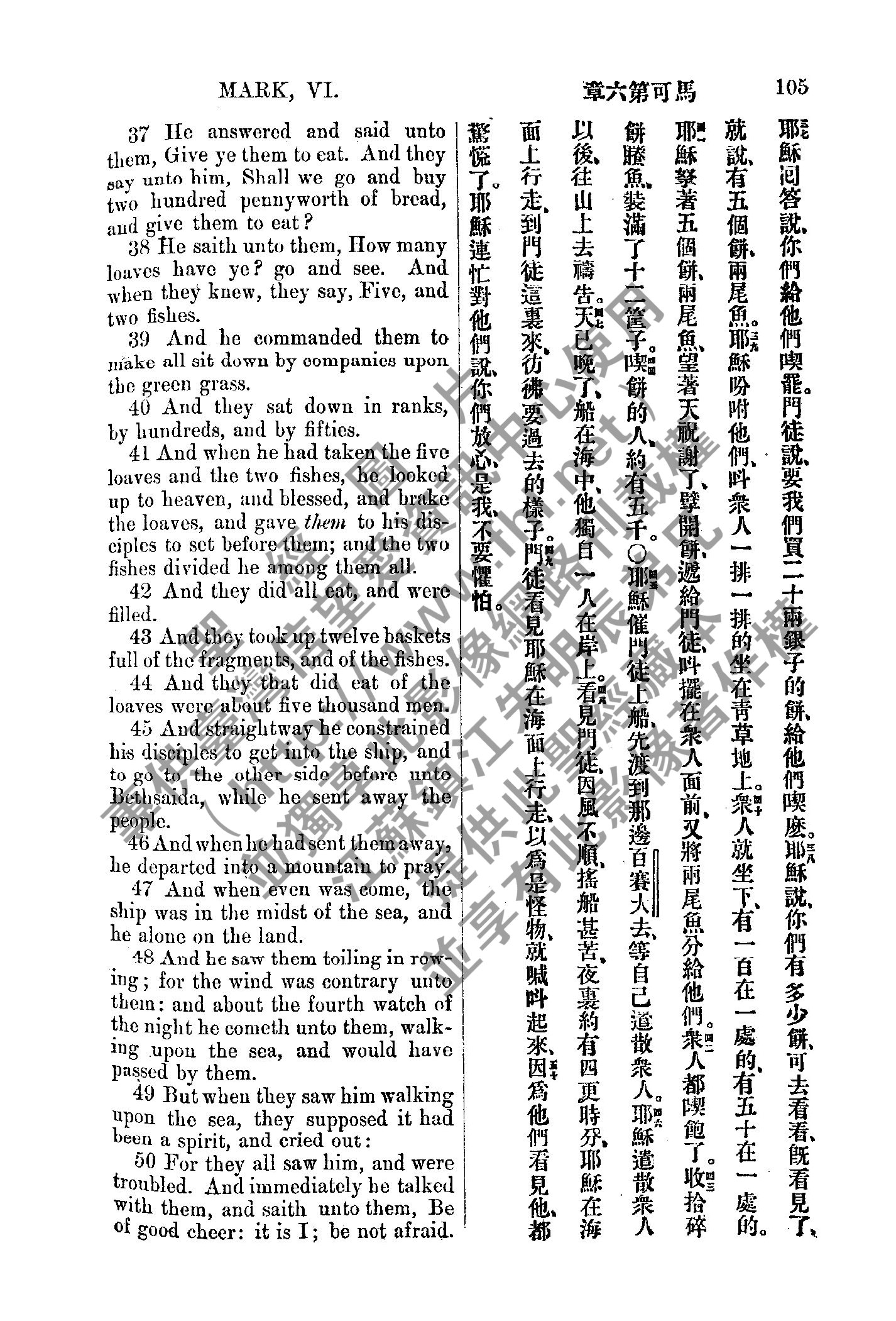 1885年新約全書 馬可福音 6 章 37 節到 6 章 50 節